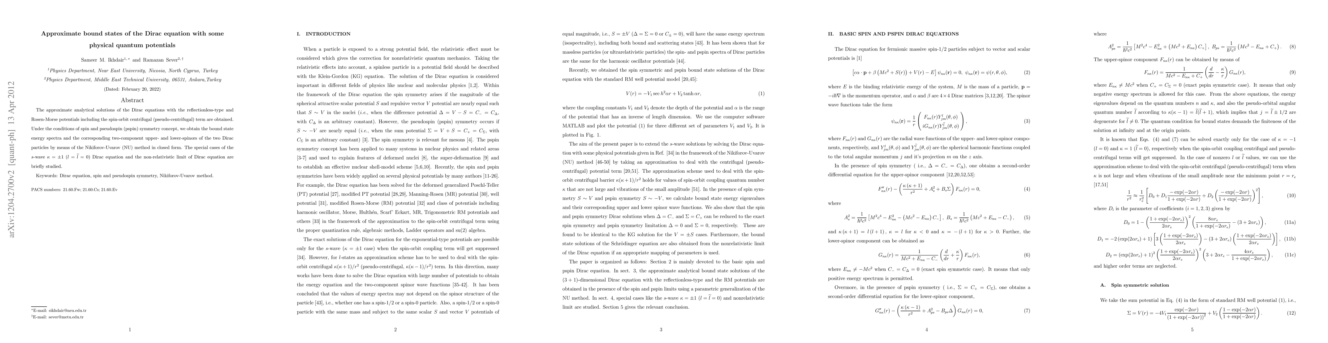 This paper provides approximate analytical solutions for the Dirac equation under reflectionless-type and Rosen-Morse potentials, incorporating spin-orbit centrifugal terms. Using the Nikiforov-Uvarov method, it derives closed-form expressions for bound state energy spectra and corresponding spinorial wavefunctions under spin and pseudospin symmetry conditions.