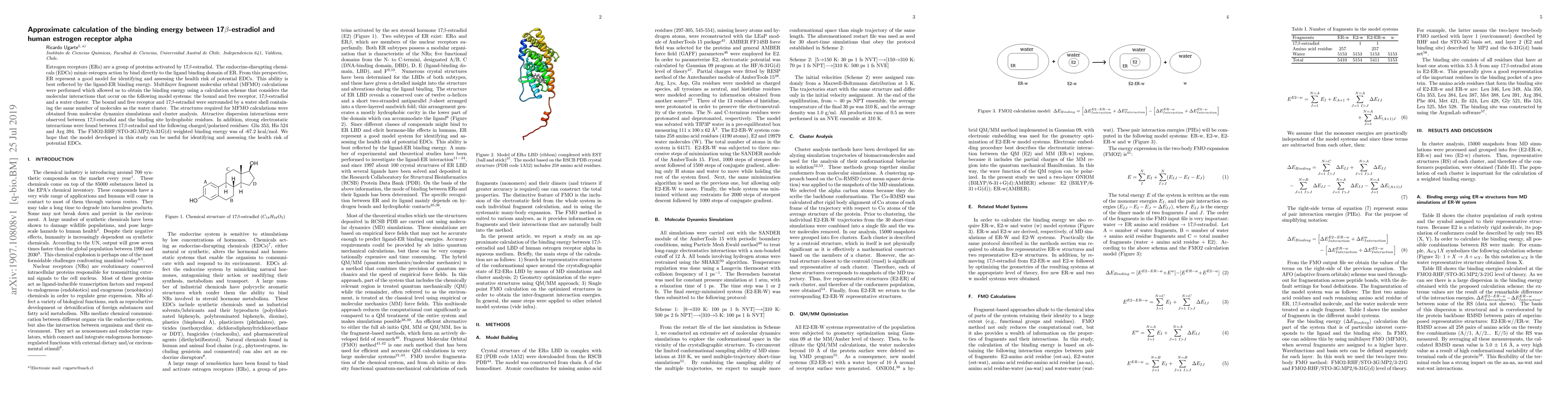 The development and application of a calculation model based on molecular interactions using MFMO, molecular dynamics simulations, and cluster analysis to approximate the binding energy between 17β-estradiol and human estrogen receptor alpha.