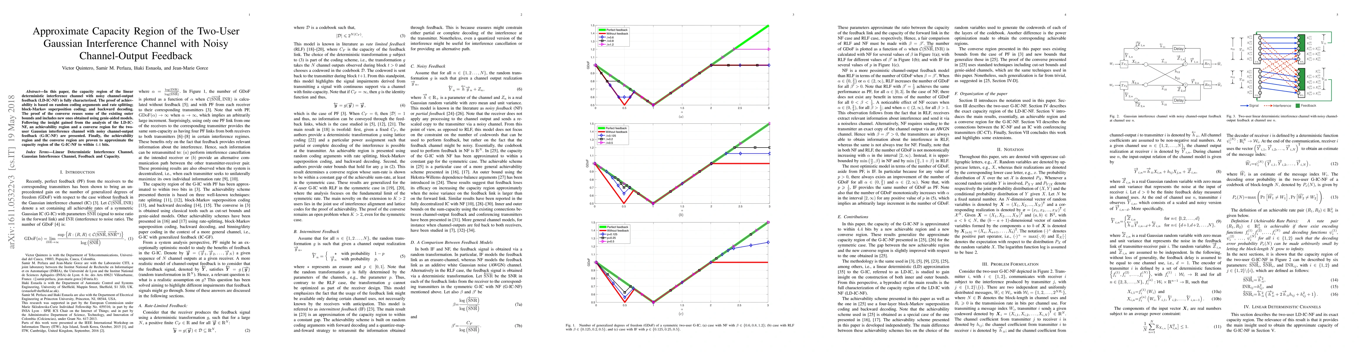 This paper characterizes the capacity region of the two-user Gaussian interference channel with noisy channel-output feedback, using random coding and rate splitting, and proves that the derived achievability and converse regions approximate the true capacity region within 4.4 bits.
