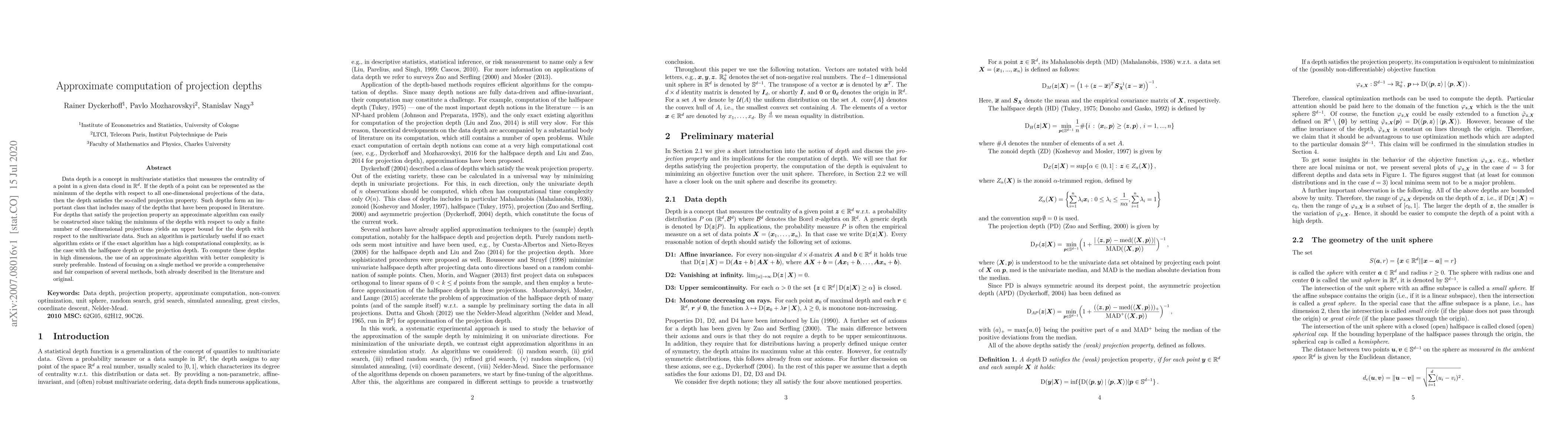 This paper discusses the approximate computation of projection depths in multivariate statistics, focusing on efficient algorithms that provide upper bounds for depths that satisfy the projection property. It compares several existing and new methods to determine the most effective approximate approach for high-dimensional data.