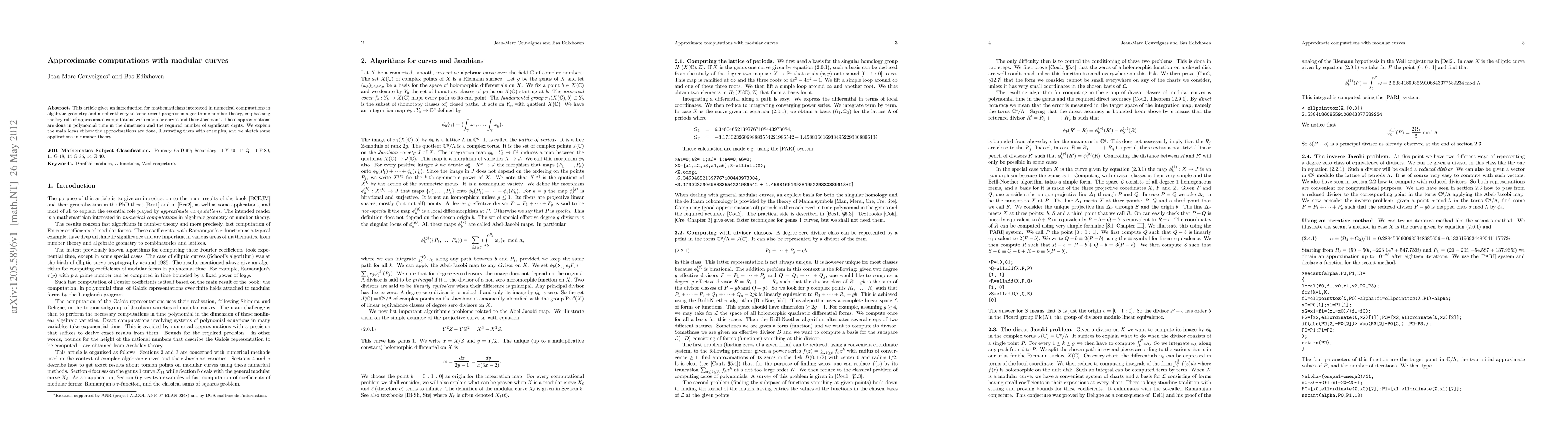 Recent progress in algorithmic number theory focuses on efficient approximations using modular curves and their Jacobians, achieving polynomial time complexity for significant digits.