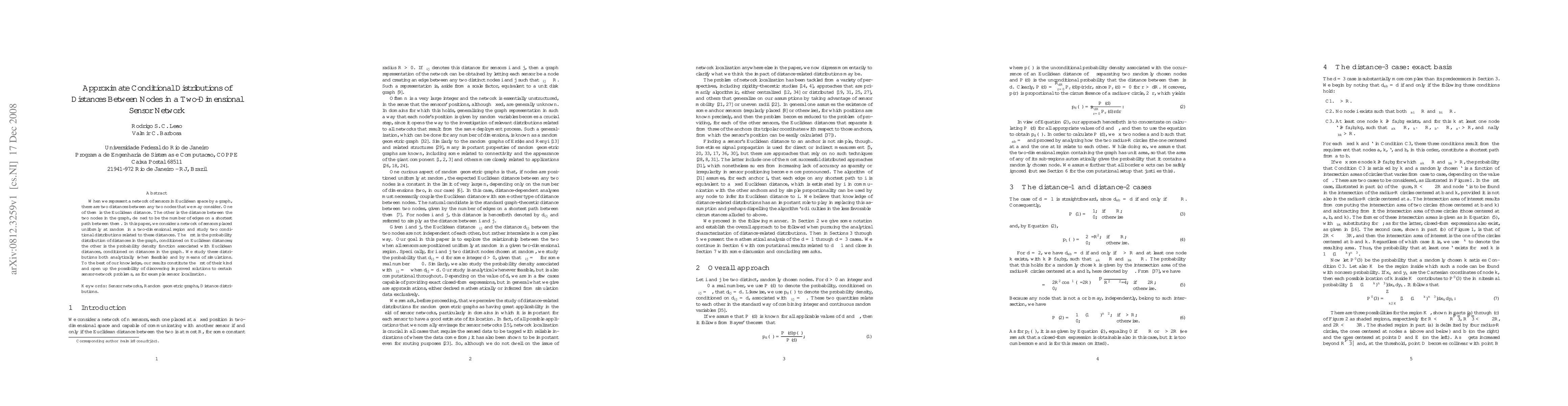 This paper investigates the conditional distributions of distances between nodes in a two-dimensional sensor network, focusing on both Euclidean and graph distances. It presents analytical and simulation results on these distributions, which may lead to better solutions for sensor localization and related problems.