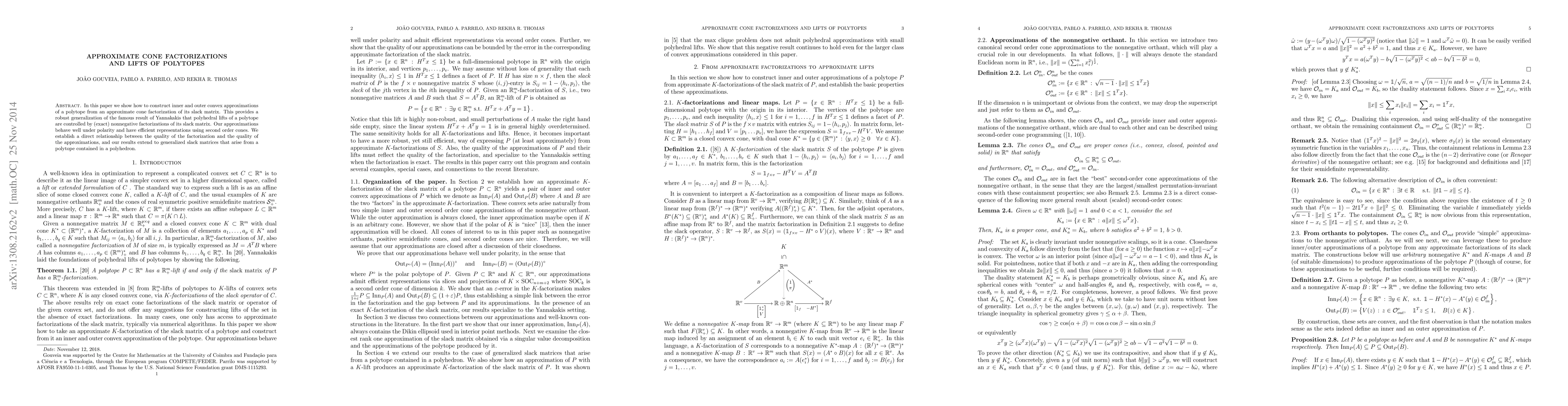 In this paper we show how to construct inner and outer convex approximations of a polytope from an approximate cone factorization of its slack matrix. This provides a robust generalization of the famous result of Yannakakis that polyhedral lifts of a polytope are controlled by (exact) nonnegative factorizations of its slack matrix. Our approximations behave well under polarity and have efficient representations using second order cones. We establish a direct relationship between the quality of the factorization and the quality of the approximations, and our results extend to generalized slack matrices that arise from a polytope contained in a polyhedron.