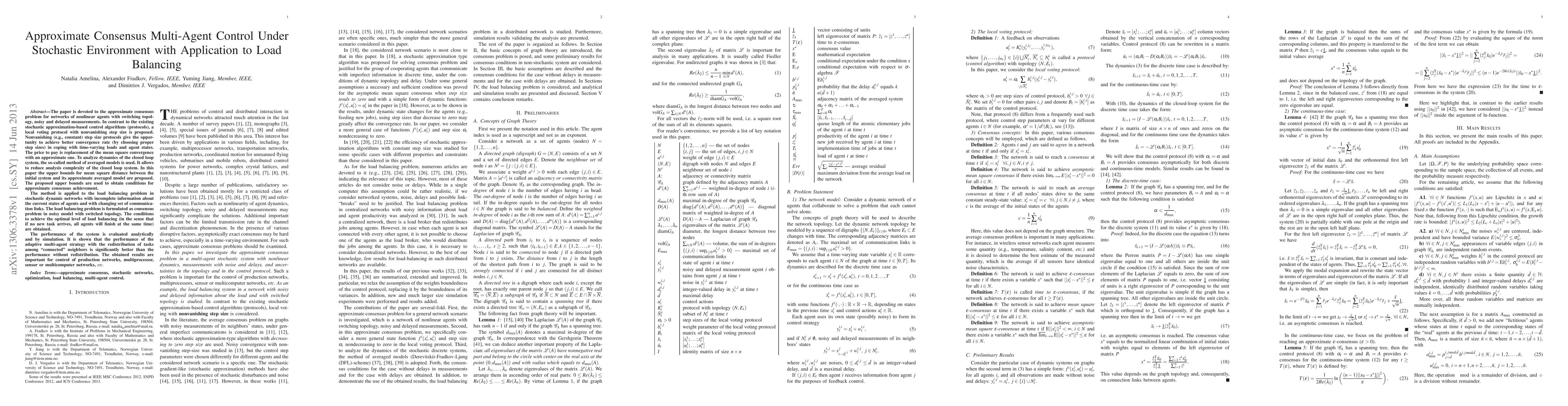 A new algorithm for multi-agent control in stochastic environments is proposed, achieving approximate consensus through a local voting protocol with nonvanishing step size, outperforming traditional methods in load balancing applications.