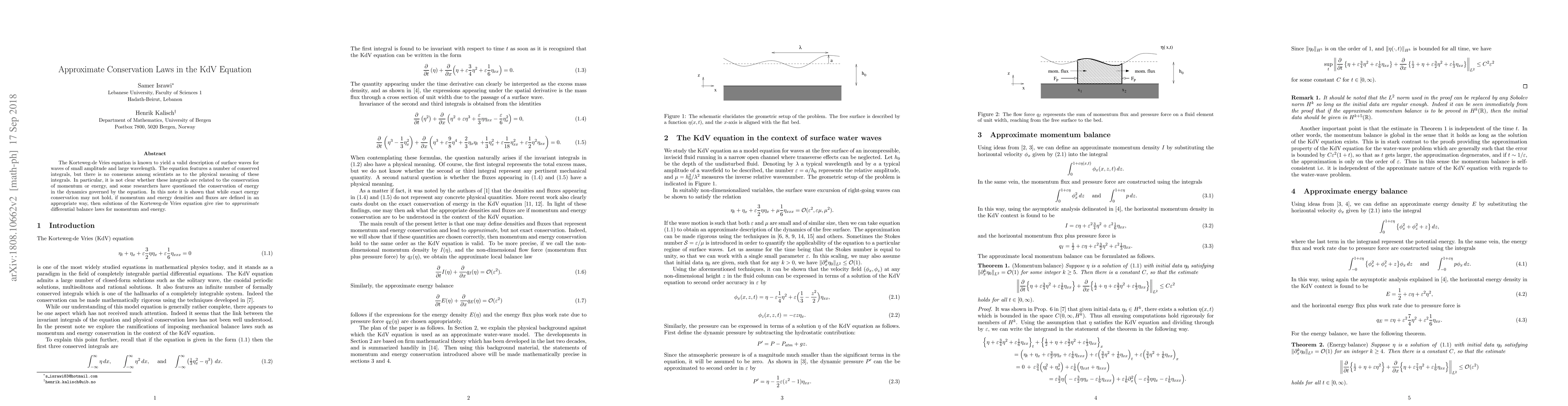 The Korteweg-de Vries equation is known to yield a valid description of surface waves for waves of small amplitude and large wavelength. The equation features a number of conserved integrals, but there is no consensus among scientists as to the physical meaning of these integrals. In particular, it is not clear whether these integrals are related to the conservation of momentum or energy, and some researchers have questioned the conservation of energy in the dynamics governed by the equation. In this note it is shown that while exact energy conservation may not hold, if momentum and energy densities and fluxes are defined in an appropriate way, then solutions of the Korteweg-de Vries equation give rise to approximate differential balance laws for momentum and energy.