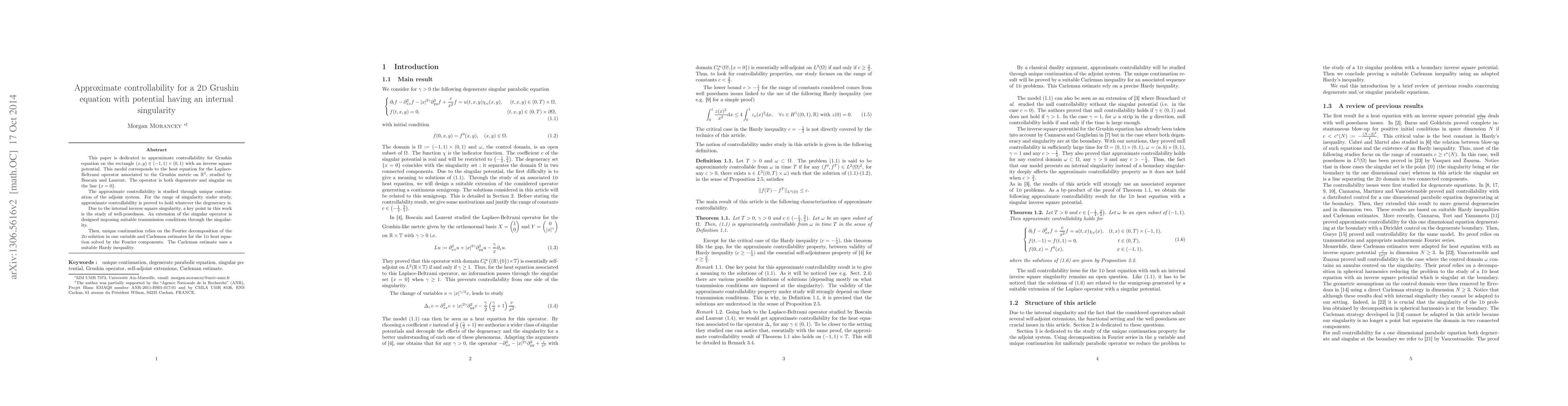 This paper proves approximate controllability for a 2D Grushin equation with an internal inverse square potential singularity, addressing well-posedness through an extended operator and using unique continuation via Fourier decomposition and Carleman estimates.