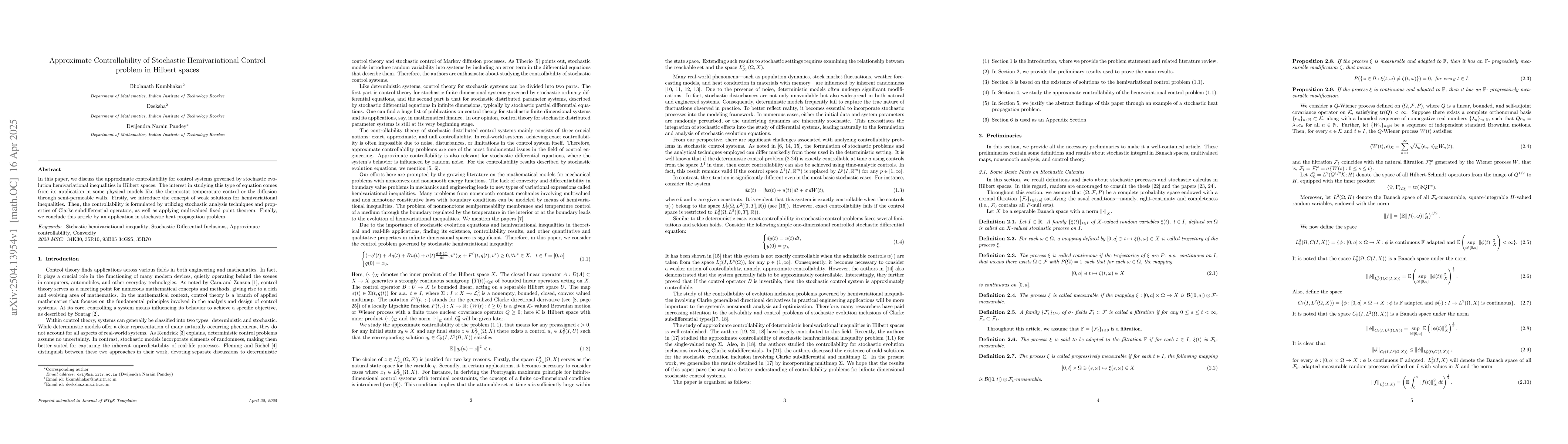 The paper employs stochastic analysis techniques and properties of Clarke subdifferential operators to study approximate controllability for stochastic hemivariational control problems in Hilbert spaces.