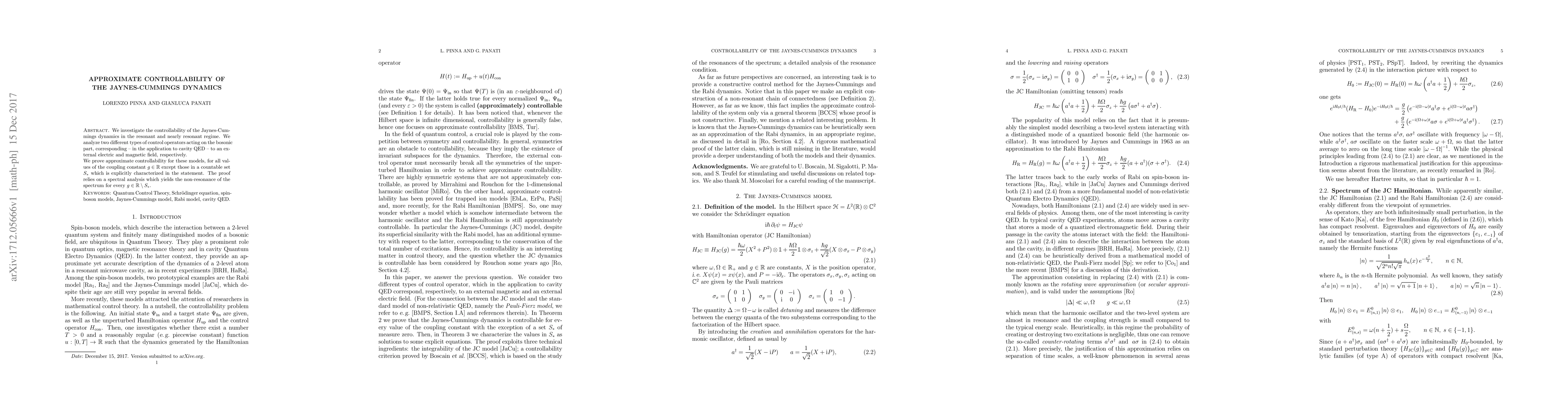 The study investigates controllability of Jaynes-Cummings dynamics with external fields, proving approximate control for most coupling constant values except a countable set, using spectral analysis to identify non-resonance cases.