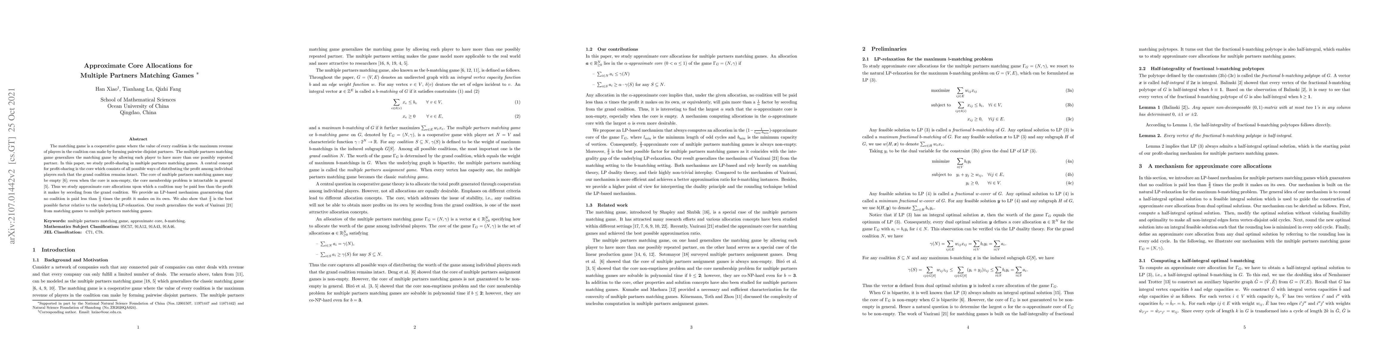 This paper explores profit-sharing in multiple partners matching games, focusing on approximate core allocations. It introduces an LP-based mechanism ensuring no coalition receives less than $2/3$ of its independent profit, proving this as the optimal factor relative to the LP-relaxation. This extends previous work on matching games to the more complex multiple partners scenario.