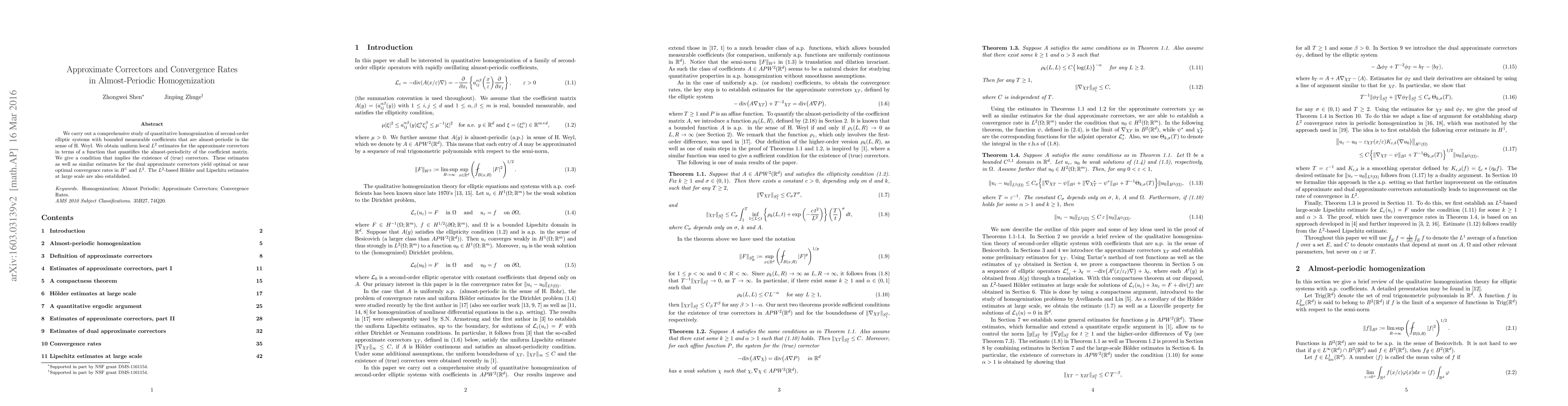 This paper studies the quantitative homogenization of second-order elliptic systems with almost-periodic coefficients, providing uniform local $L^2$ estimates for approximate correctors. It establishes conditions for the existence of true correctors and demonstrates optimal or near-optimal convergence rates in $H^1$ and $L^2$, along with large-scale $L^2$-based H\"older and Lipschitz estimates.