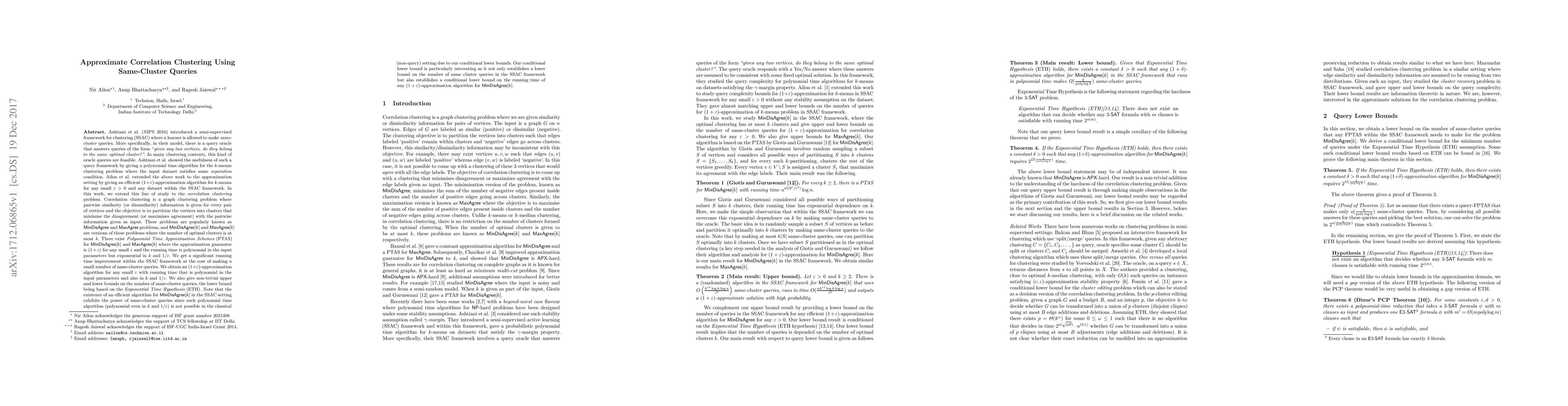 This paper extends the semi-supervised clustering framework to approximate correlation clustering using same-cluster queries, achieving an (1+\eps)-approximation with polynomial time complexity. It also provides bounds on the number of required queries, grounded in the Exponential Time Hypothesis.