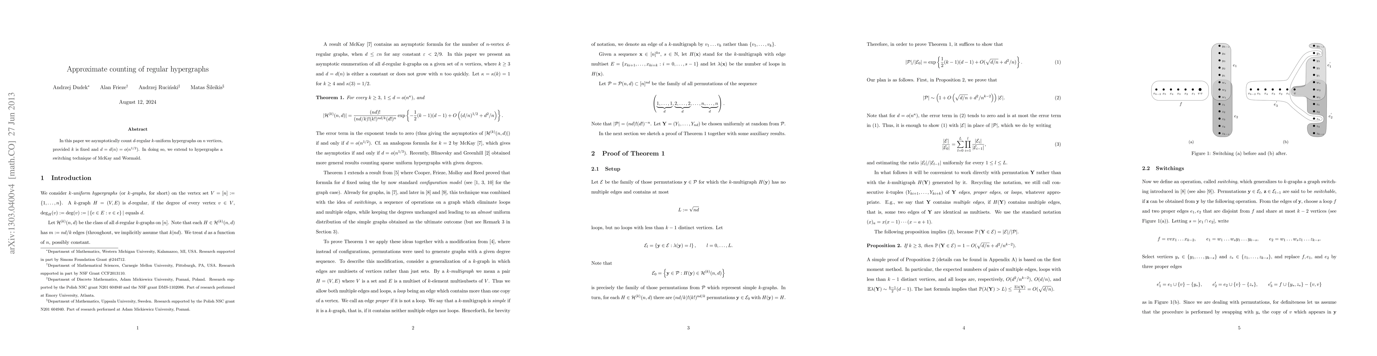 This paper presents an asymptotic count of $d$-regular $k$-uniform hypergraphs on $n$ vertices, extending McKay and Wormald's switching technique to hypergraphs, under the condition that $d$ grows slower than $n^{1/2}$. The method provides insights into the structure and enumeration of these regular hypergraphs.