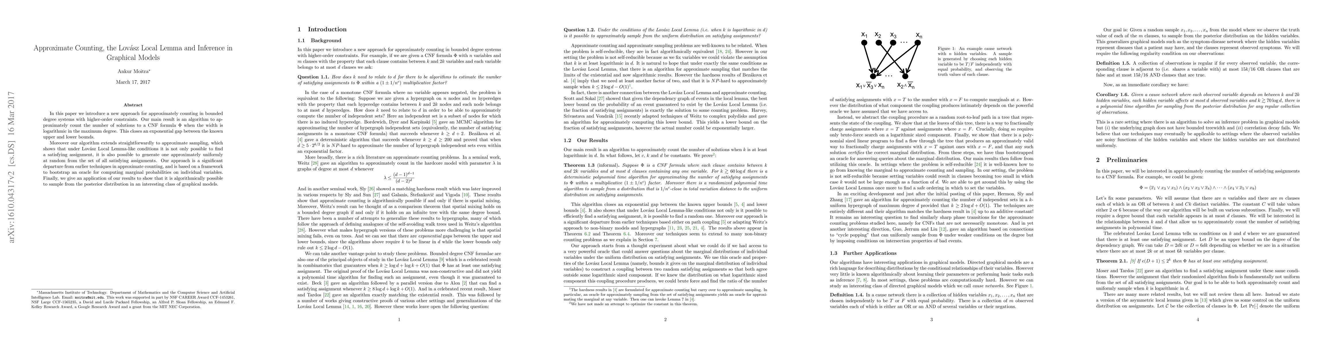In this paper we introduce a new approach for approximately counting in bounded degree systems with higher-order constraints. Our main result is an algorithm to approximately count the number of solutions to a CNF formula $\Phi$ when the width is logarithmic in the maximum degree. This closes an exponential gap between the known upper and lower bounds. Moreover our algorithm extends straightforwardly to approximate sampling, which shows that under Lov\'asz Local Lemma-like conditions it is not only possible to find a satisfying assignment, it is also possible to generate one approximately uniformly at random from the set of all satisfying assignments. Our approach is a significant departure from earlier techniques in approximate counting, and is based on a framework to bootstrap an oracle for computing marginal probabilities on individual variables. Finally, we give an application of our results to show that it is algorithmically possible to sample from the posterior distribution in an interesting class of graphical models.