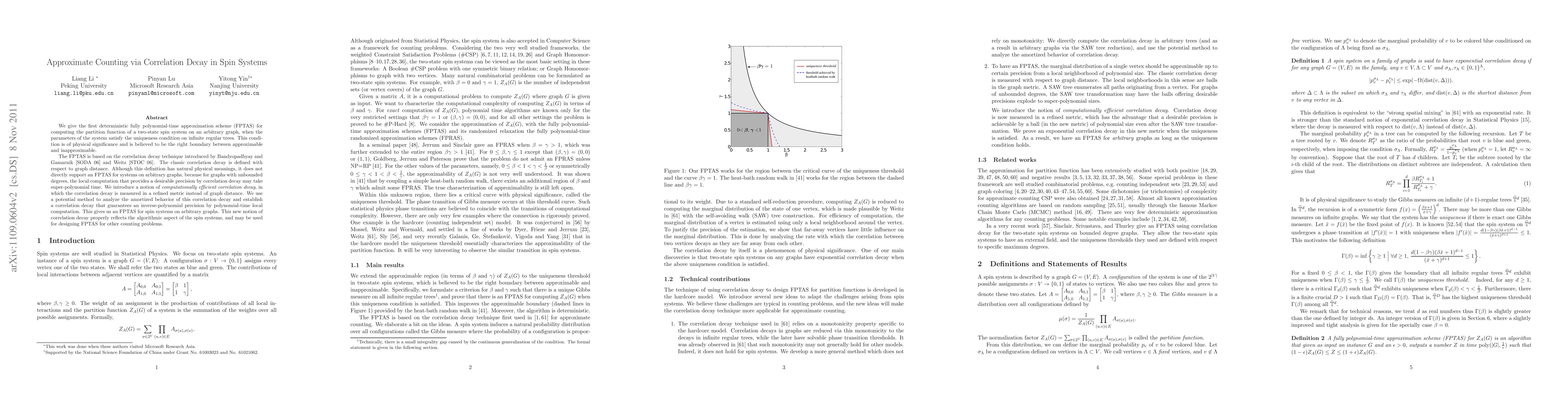 This paper presents the first deterministic FPTAS for computing the partition function of spin systems on arbitrary graphs under the uniqueness condition, using a refined correlation decay metric that allows polynomial-time local computations, thus overcoming limitations of traditional correlation decay. The proposed method may also guide FPTAS design for other counting problems.