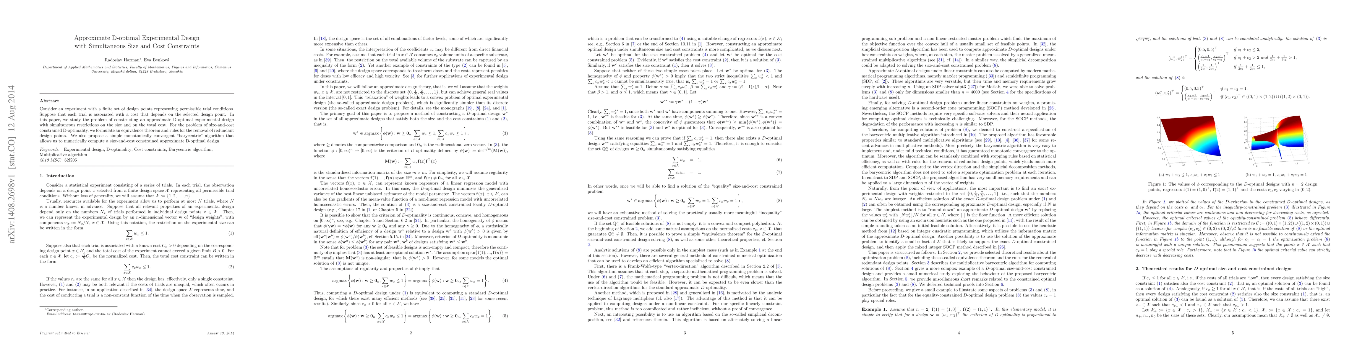 Researchers developed a method to create an approximate D-optimal experimental design with constraints on both size and cost. They proposed a 'barycentric' algorithm that can numerically compute such designs.