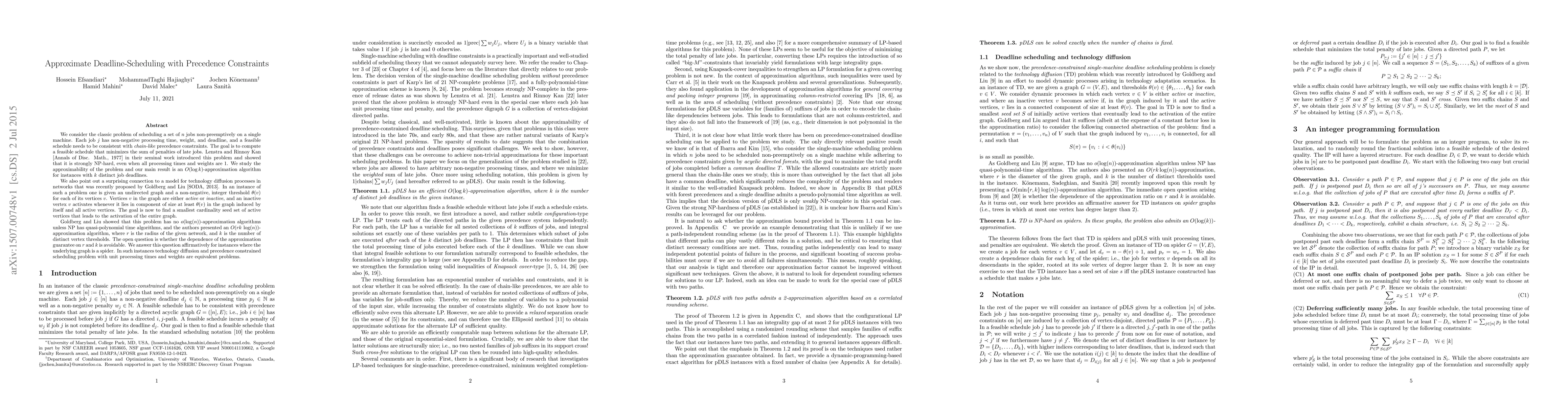 This paper addresses the NP-hard problem of scheduling jobs on a single machine with precedence constraints and deadlines, aiming to minimize penalties for late jobs. The authors propose an O(log k)-approximation algorithm for instances where k distinct job deadlines exist.