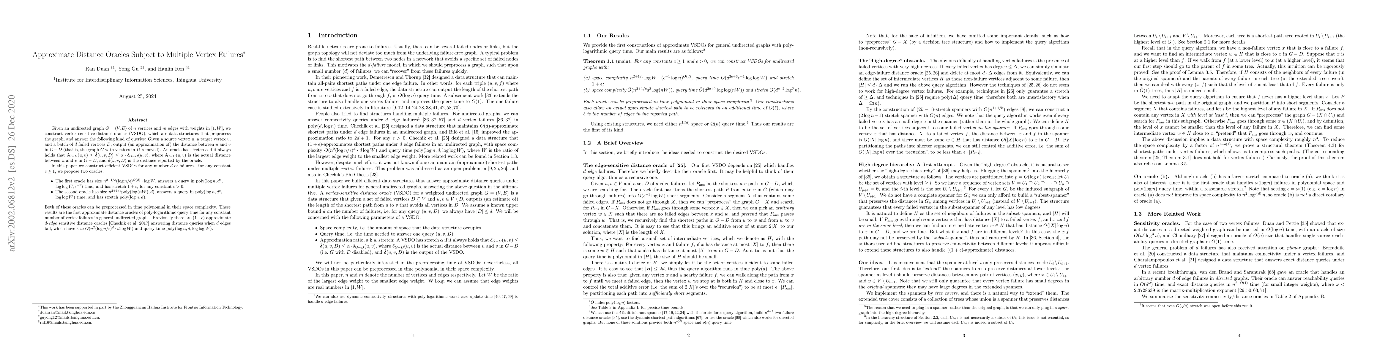 This paper constructs efficient vertex sensitive distance oracles (VSDO) that preprocess an undirected graph to answer distance queries even when multiple vertices fail. The proposed oracles achieve poly-logarithmic query time for any constant number of vertex failures and have either polylogarithmic or polylogarithmic-polynomial stretch factors.