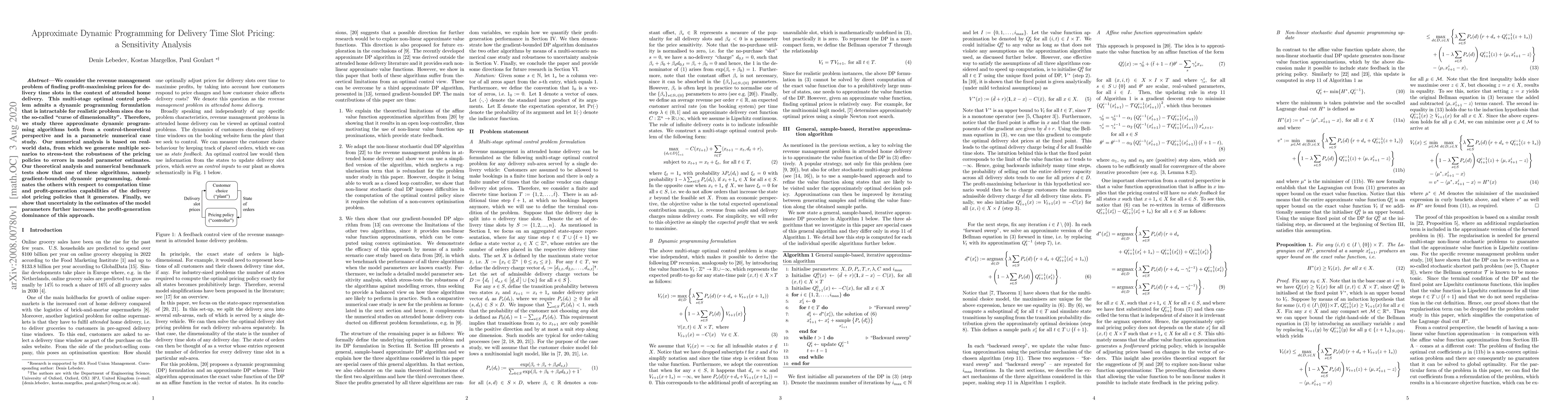 This paper explores approximate dynamic programming methods for optimizing delivery time slot pricing in attended home delivery, focusing on gradient-bounded dynamic programming. The study demonstrates its superior computational efficiency and profit-generation effectiveness compared to other algorithms, especially under parameter estimation uncertainties.