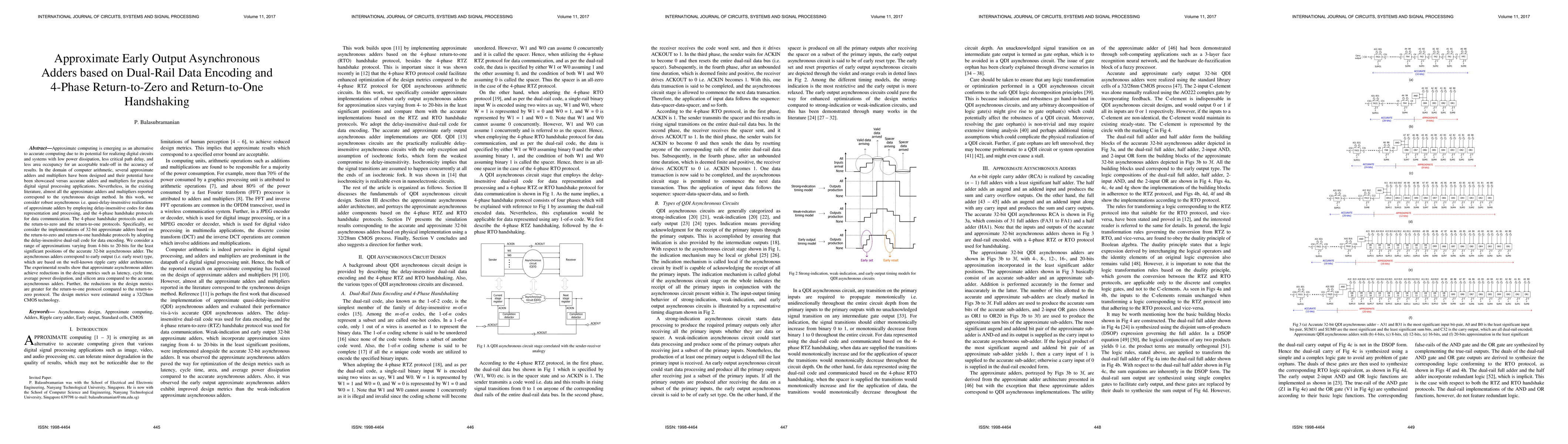 This paper proposes asynchronous approximate adders using dual-rail data encoding and 4-phase handshake protocols to achieve lower power and area compared to accurate adders. Experimental results show significant reductions in latency, power, and silicon area, with greater improvements for the return-to-one protocol.