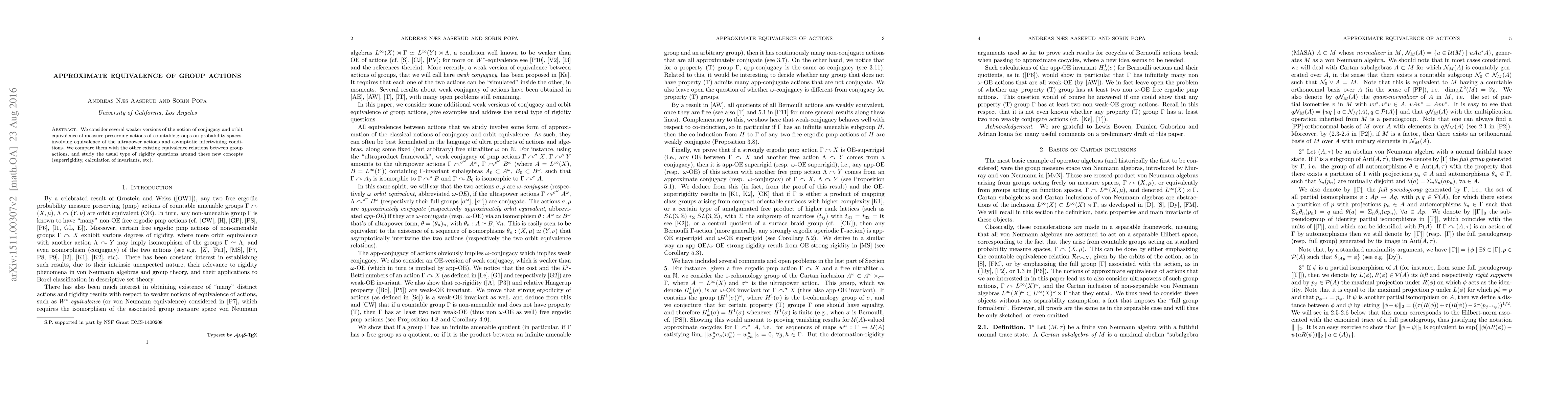 This paper explores various weaker forms of conjugacy and orbit equivalence for measure-preserving actions of countable groups, comparing them with existing equivalence relations and investigating associated rigidity properties. It focuses on ultrapower actions and asymptotic intertwining conditions.