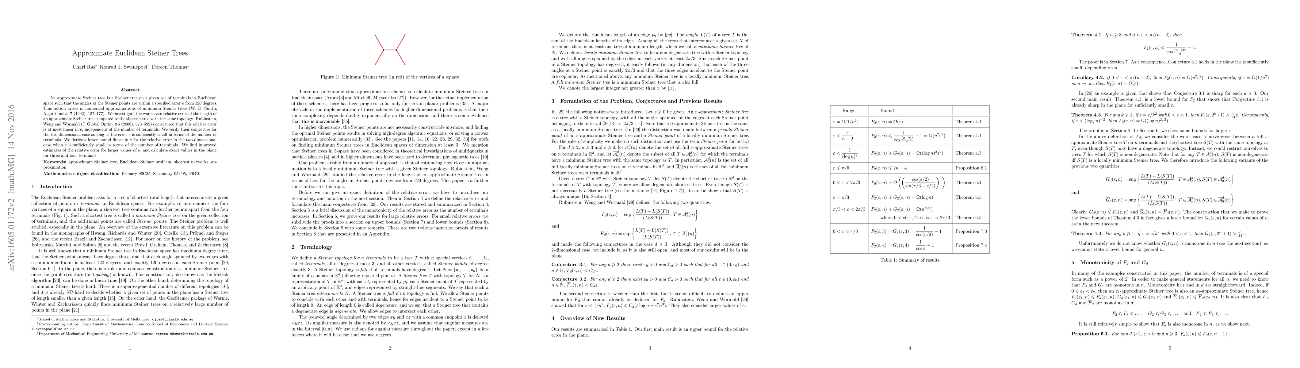 The paper investigates the worst-case relative error of approximate Euclidean Steiner trees compared to the shortest tree with the same topology, focusing on the two-dimensional case and providing bounds for various error values.