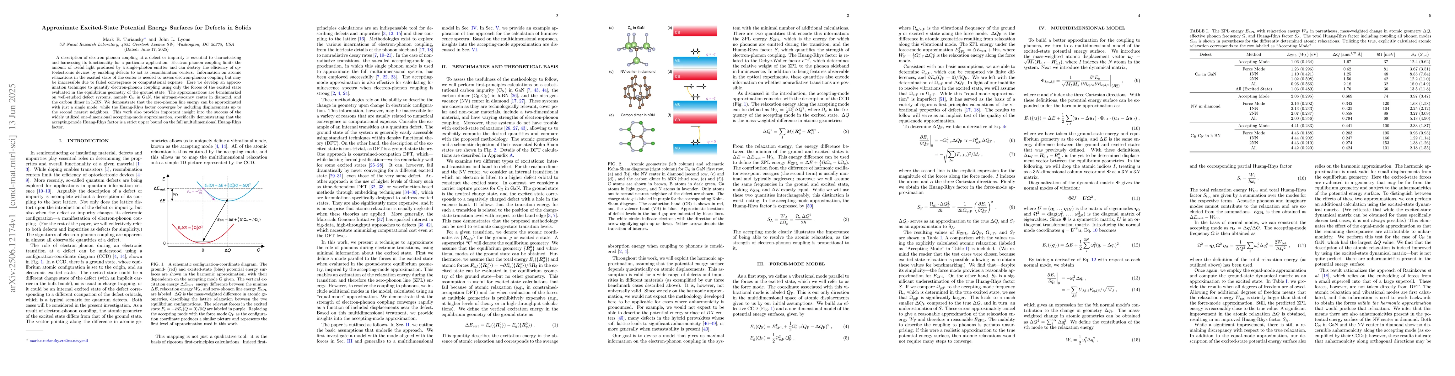 A description of electron-phonon coupling at a defect or impurity is essential to characterizing and harnessing its functionality for a particular application. Electron-phonon coupling limits the amount of useful light produced by a single-photon emitter and can destroy the efficiency of optoelectronic devices by enabling defects to act as recombination centers. Information on atomic relaxations in the excited state of the center is needed to assess electron-phonon coupling but may be inaccessible due to failed convergence or computational expense. Here we develop an approximation technique to quantify electron-phonon coupling using only the forces of the excited state evaluated in the equilibrium geometry of the ground state. The approximations are benchmarked on well-studied defect systems, namely C$_{\rm N}$ in GaN, the nitrogen-vacancy center in diamond, and the carbon dimer in h-BN. We demonstrate that the zero-phonon line energy can be approximated with just a single mode, while the Huang-Rhys factor converges by including displacements up to the second nearest neighbors. This work also provides important insight into the success of the widely utilized one-dimensional accepting-mode approximation, specifically demonstrating that the accepting-mode Huang-Rhys factor is a strict upper bound on the full multidimensional Huang-Rhys factor.