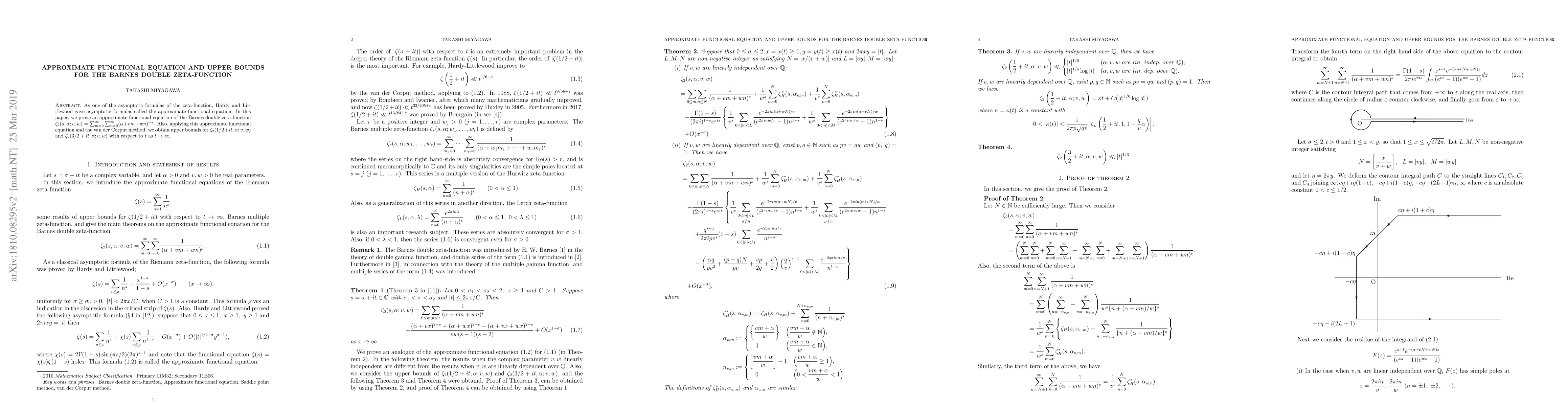 This paper proves an approximate functional equation for the Barnes double zeta-function and derives upper bounds for its values at specific points as t approaches infinity.