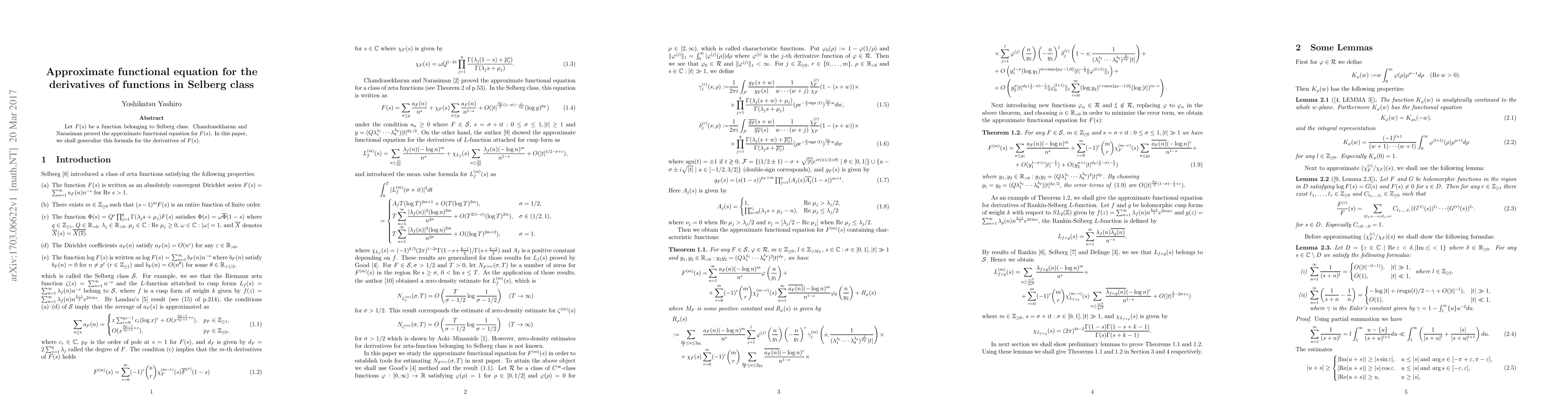 Let $F(s)$ be a function belonging to Selberg class. Chandrasekharan and Narasiman proved the approximate functional equation for $F(s)$. In this paper, we shall generalize this formula for the derivatives of $F(s)$.