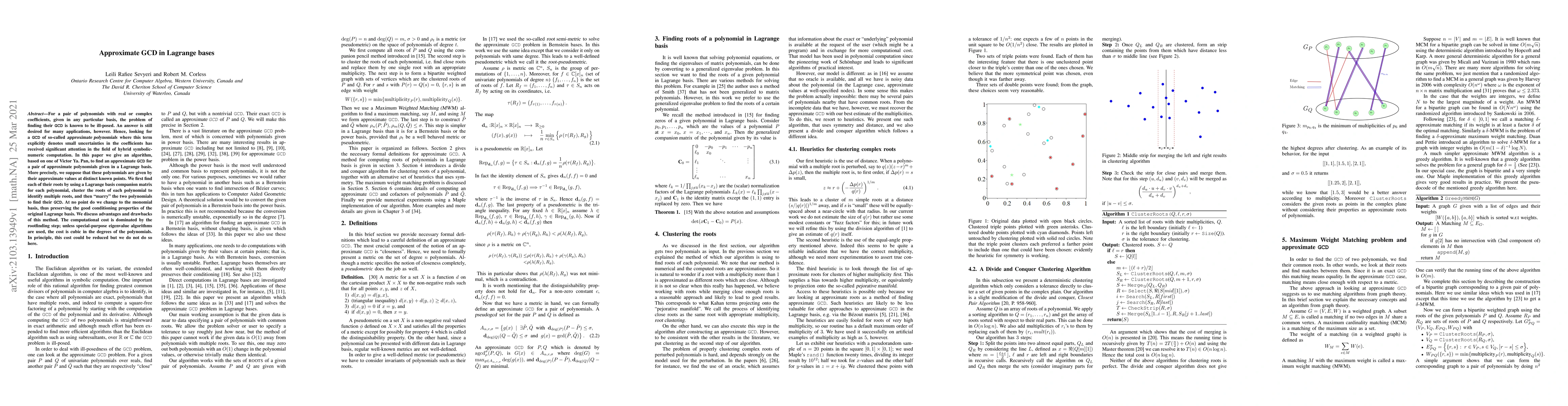 This paper presents an algorithm to find an approximate GCD for pairs of polynomials given in a Lagrange basis, leveraging root clustering and Lagrange basis companion matrices without switching to the monomial basis. The computational cost is primarily cubic in the degrees of the polynomials, dominated by the rootfinding step.