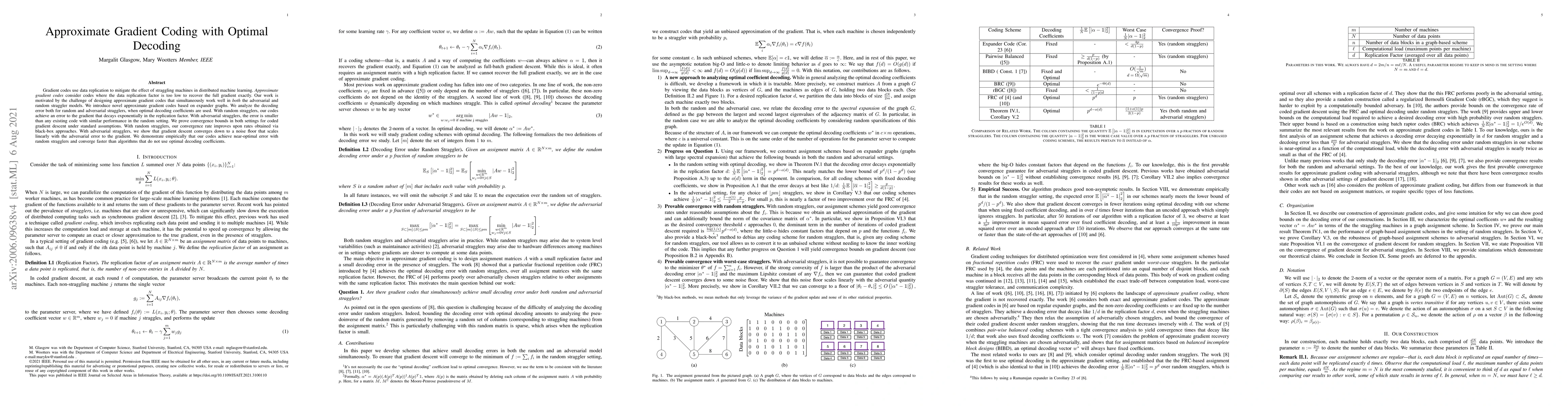 The paper introduces novel approximate gradient coding schemes based on expander graphs, analyzing decoding error in both random and adversarial straggler settings using optimal decoding coefficients.