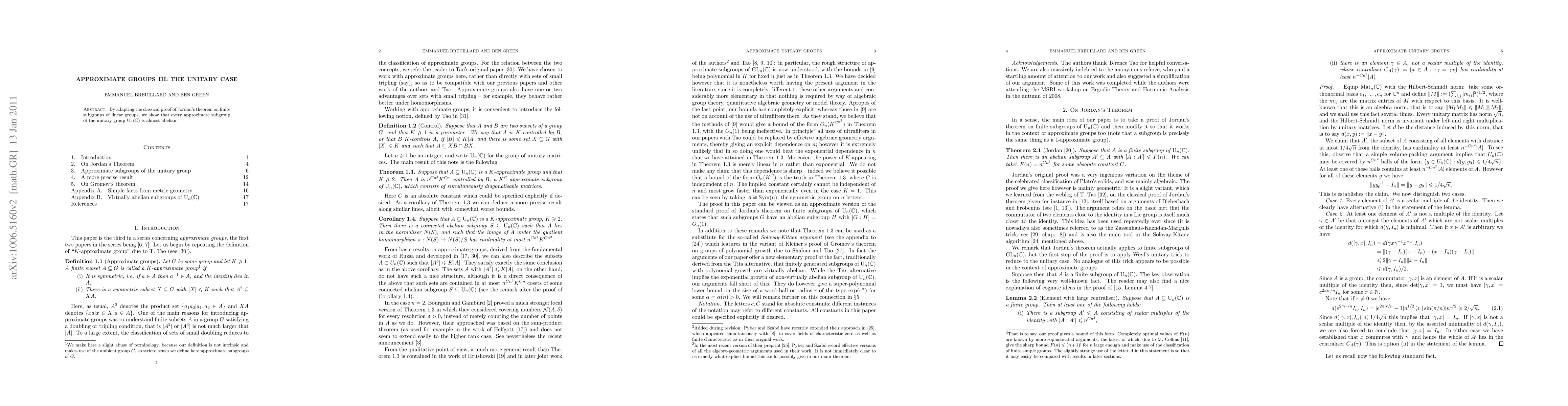 By adapting the classical proof of Jordan's theorem on finite subgroups of linear groups, we show that every approximate subgroup of the unitary group U_n(C) is almost abelian.