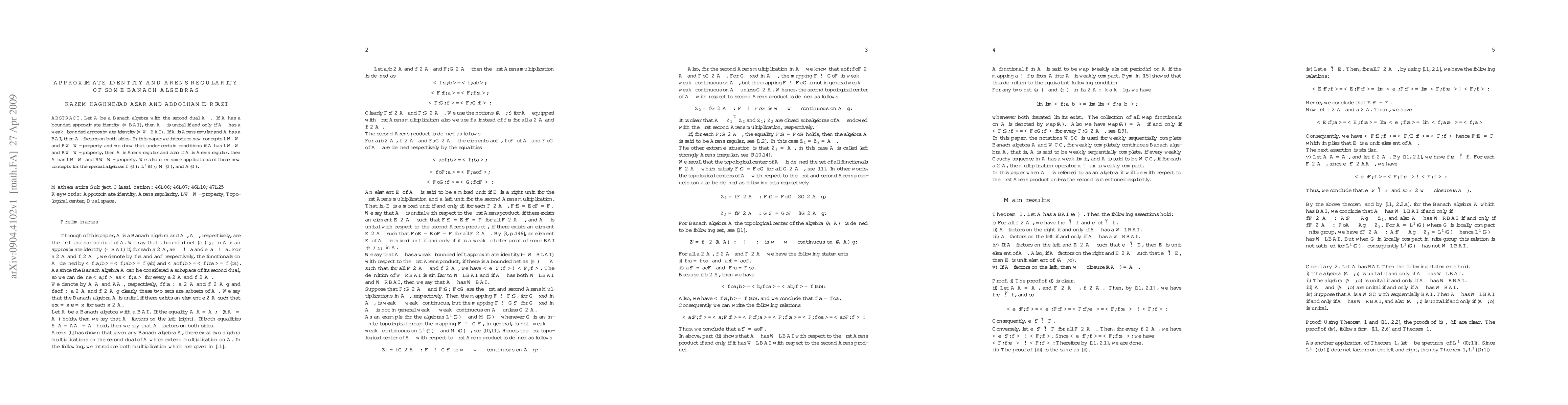 Let $A$ be a Banach algebra with the second dual $A^{**}$. If $A$ has a bounded approximate identity $(=BAI)$, then $A^{**}$ is unital if and only if $A^{**}$ has a $weak^* bounded approximate $$identity(=W^*BAI)$. If $A$ is Arens regular and $A$ \noindent has a BAI, then $A^*$ factors on both sides. In this paper we introduce new concepts $LW^*W$ and $RW^*W$- property and we show that under certain conditions if $A$ has $LW^*W$ and $RW^*W$- property, then $A$ is Arens regular and also if $A$ is Arens regular, then $A$ has $LW^*W$ and $RW^*W$- property. We also offer some applications of these new concepts for the special algebras $l^1(G), L^1(G), M(G)$, and $A(G)$.