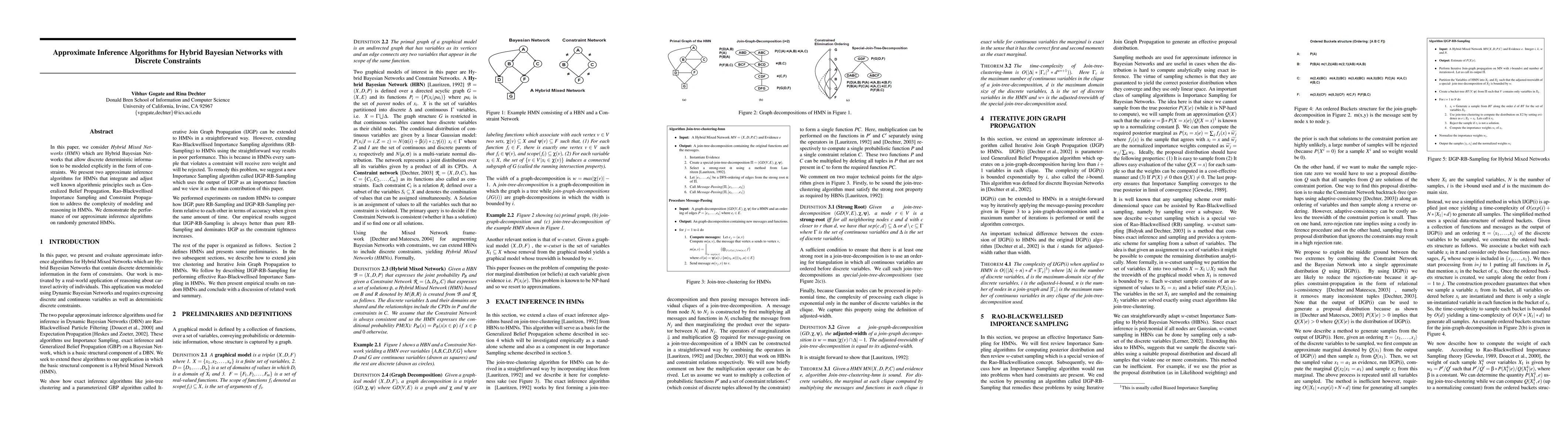 This paper introduces two approximate inference algorithms for Hybrid Mixed Networks (HMNs), which are hybrid Bayesian networks incorporating discrete constraints. The algorithms combine Generalized Belief Propagation, Rao-Blackwellised Importance Sampling, and Constraint Propagation to manage the complexity of HMNs, and their performance is evaluated on randomly generated networks.