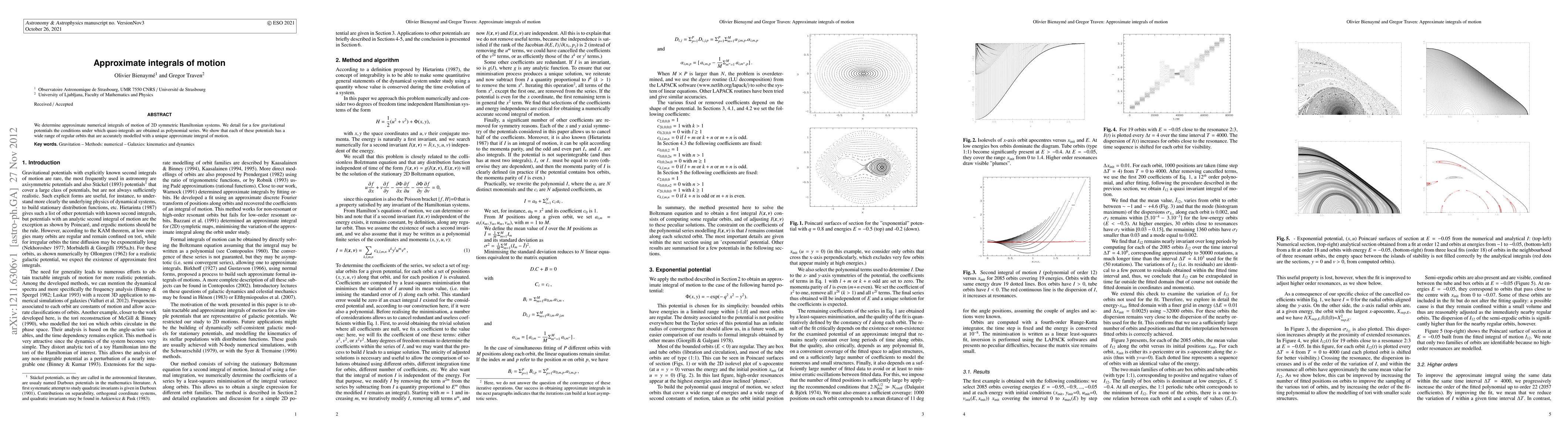 We determine approximate numerical integrals of motion of 2D symmetric Hamiltonian systems. We detail for a few gravitational potentials the conditions under which quasi-integrals are obtained as polynomial series. We show that each of these potentials has a wide range of regular orbits that are accurately modelled with a unique approximate integral of motion.