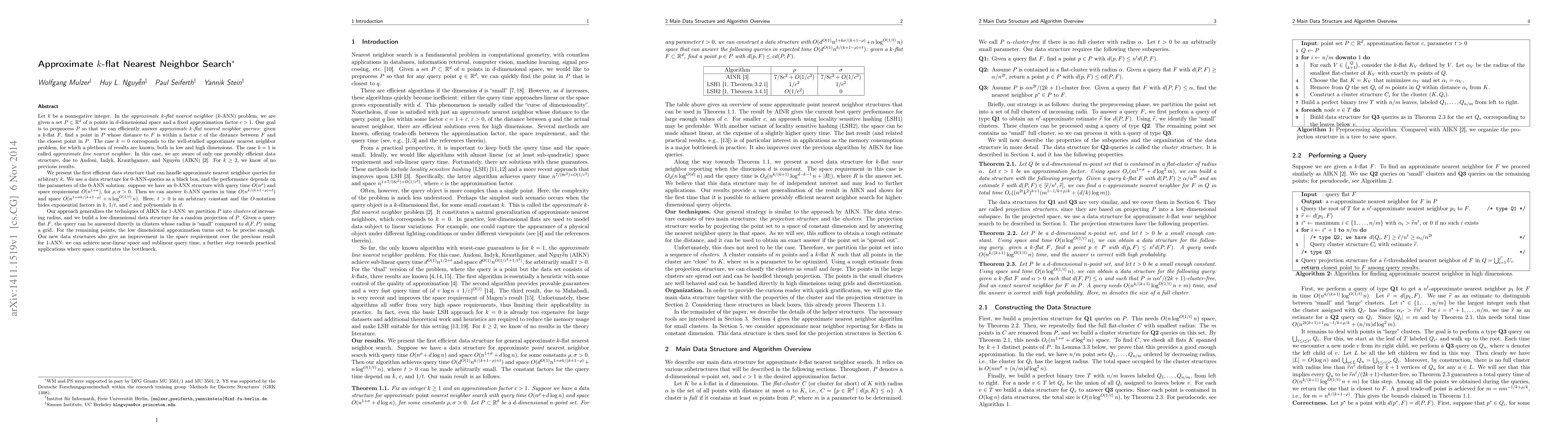 This paper introduces the first efficient data structure for approximate $k$-flat nearest neighbor search, applicable for any $k \geq 0$. It leverages a $0$-ANN structure and provides near-linear space and sublinear query time, significantly improving upon previous results, especially for $k = 1$.