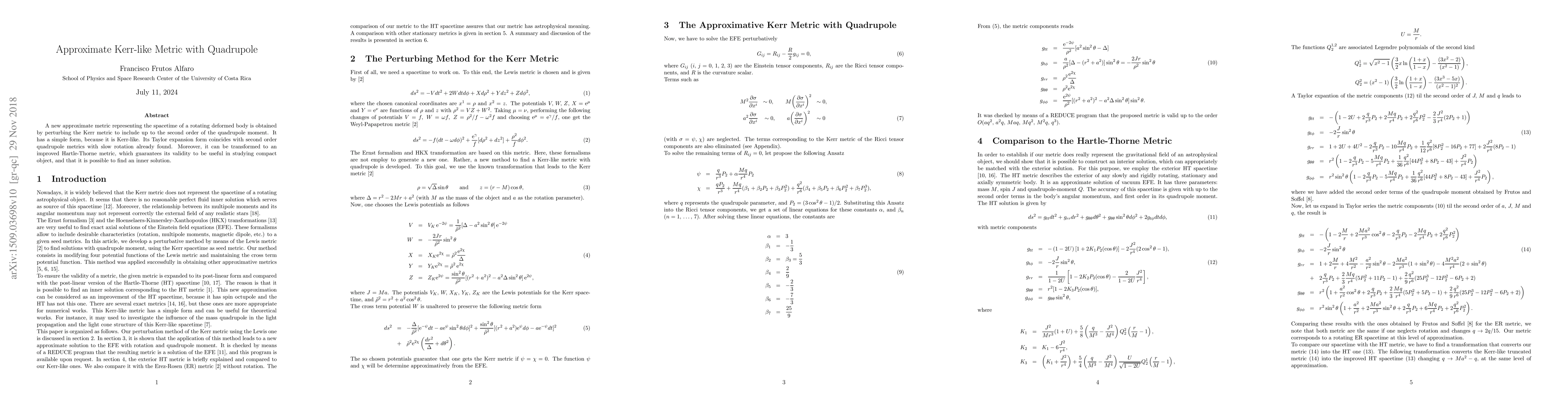 This paper presents an approximate Kerr-like metric that perturbs the Kerr metric to include the second-order quadrupole moment, simplifying the analysis of rotating deformed bodies. It aligns with existing second-order quadrupole metrics and can be transformed into an improved Hartle-Thorne metric, making it useful for studying compact objects.