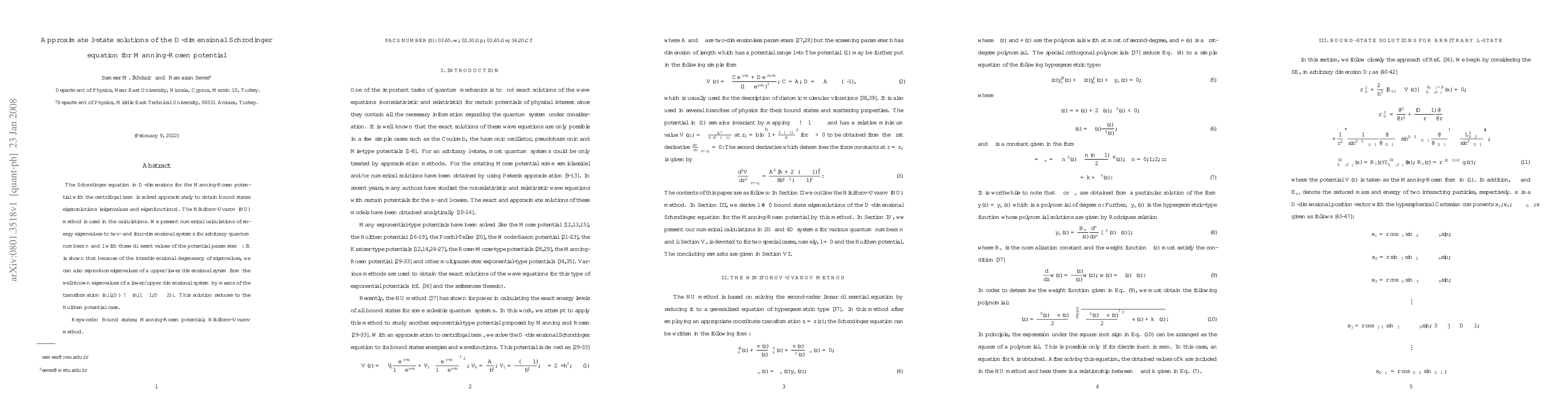 Researchers solved the D-dimensional Schrodinger equation for Manning-Rosen potential using the Nikiforov-Uvarov method, finding bound states eigensolutions with energy eigenvalues and functions that can be transformed between dimensions.