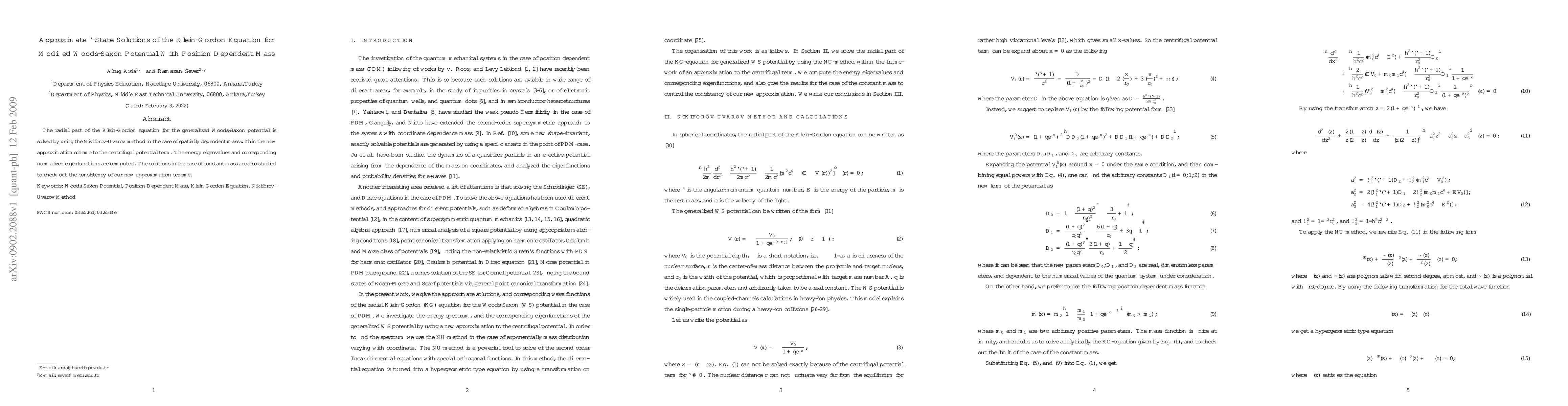 This paper solves the radial Klein-Gordon equation for a modified Woods-Saxon potential with a position-dependent mass using the Nikiforov-Uvarov method, deriving energy eigenvalues and eigenfunctions. It also verifies the consistency of the new approximation scheme by comparing results with the constant mass case.
