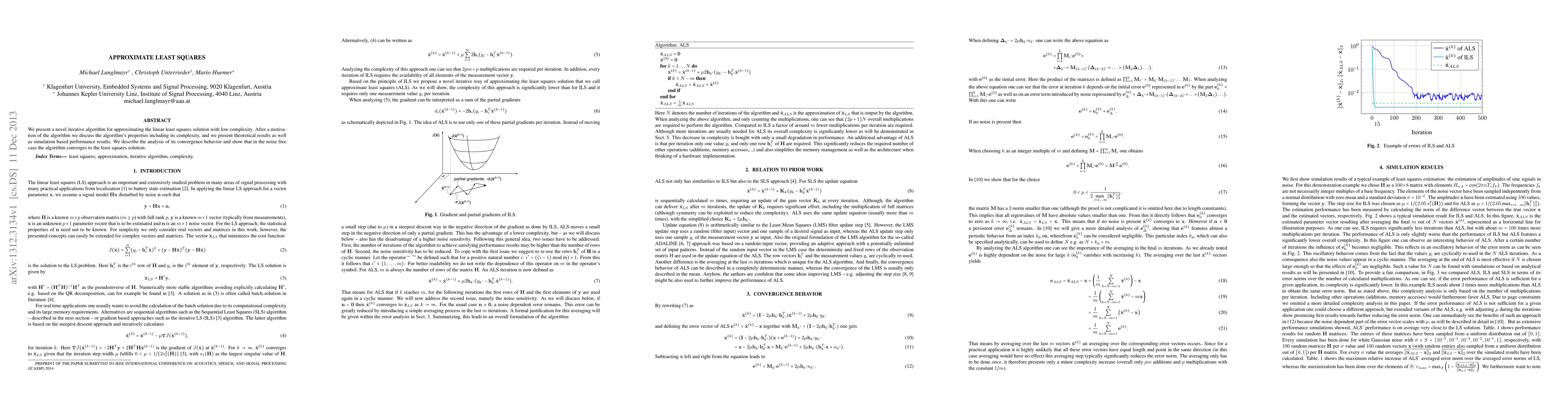 This paper introduces an efficient iterative algorithm for approximating the linear least squares solution with reduced computational complexity. The authors analyze the algorithm's properties, theoretical convergence, and demonstrate its performance through simulations, showing it converges to the least squares solution in noise-free scenarios.