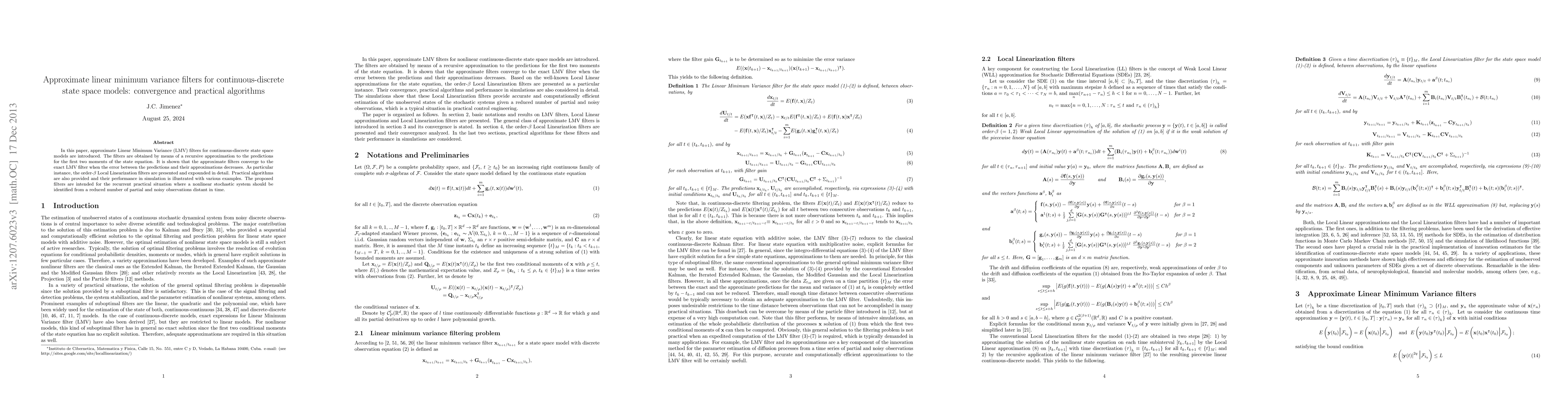 This paper introduces approximate Linear Minimum Variance filters for continuous-discrete state space models, showing their convergence to exact filters as prediction errors diminish. Practical algorithms for these filters, including the order-$\beta$ Local Linearization filters, are provided and demonstrated through simulations.