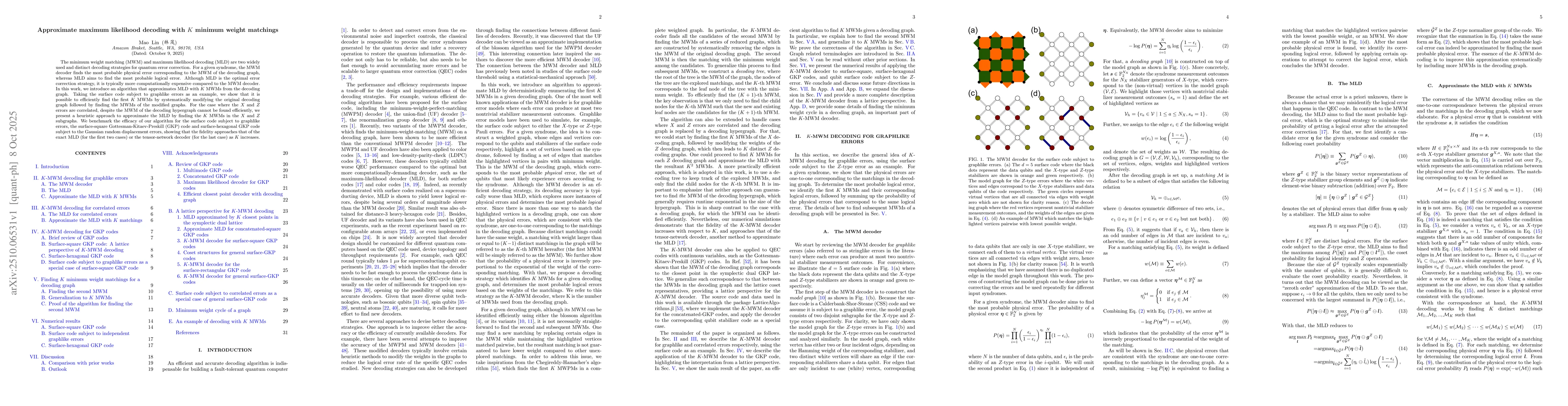 Introduces the concept of using multiple minimum weight matchings to approximate ML decoding, providing a new perspective on error correction in quantum codes