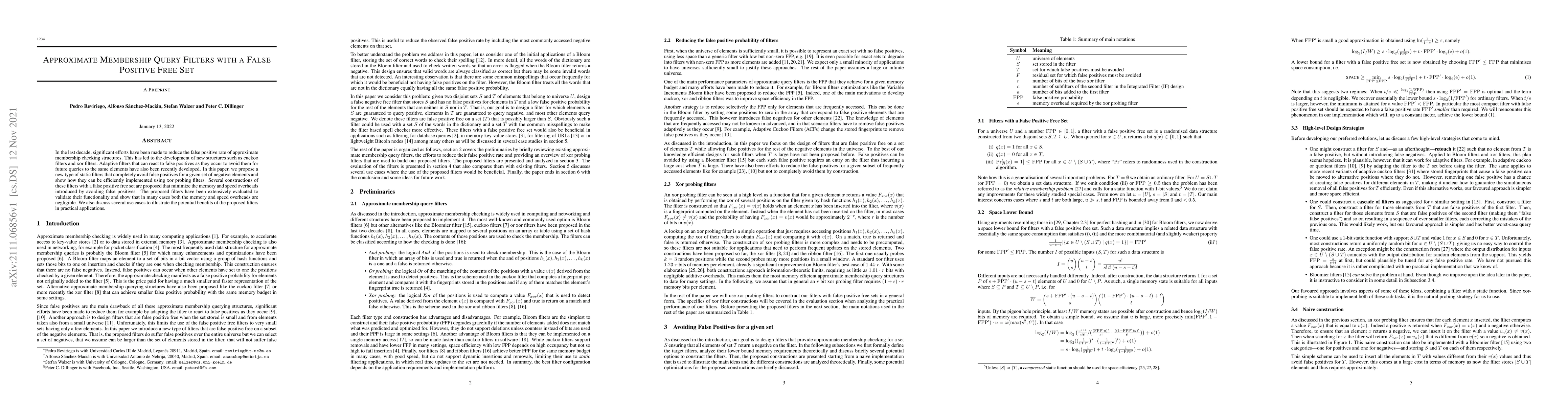 This paper introduces static filters that entirely eliminate false positives for a predefined set of negative elements, employing xor probing filters for efficient implementation. The proposed filters minimize memory and speed overheads, and extensive evaluations demonstrate their practical benefits in various applications.