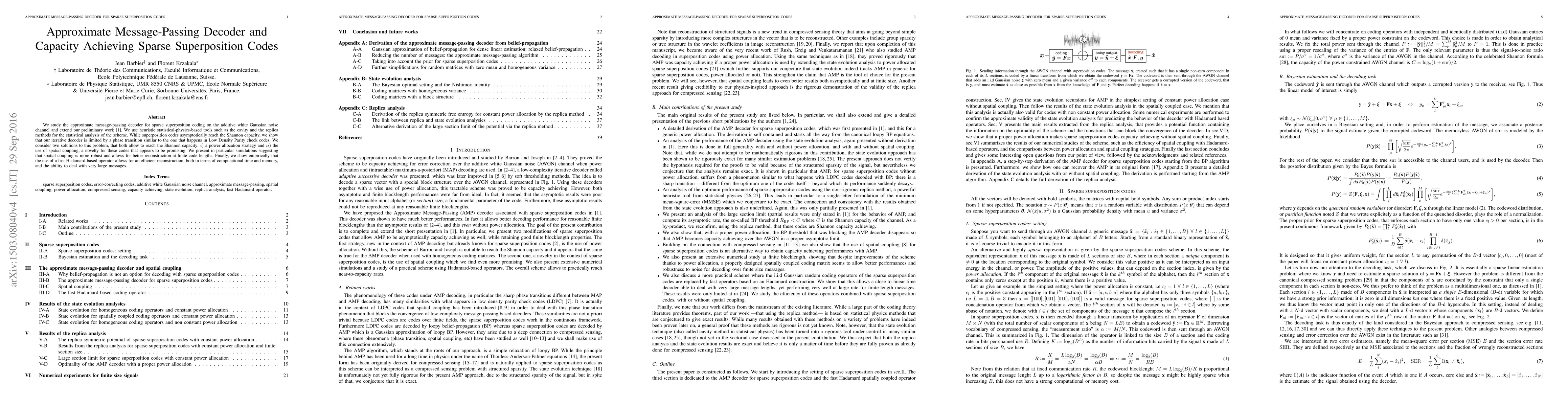 This paper proposes an approximate message-passing decoder for sparse superposition codes on additive white Gaussian noise channels, employing statistical-physics-based tools for analysis. It introduces spatial coupling and power allocation strategies to overcome decoding limitations, showing that spatial coupling provides better reconstruction at finite lengths.