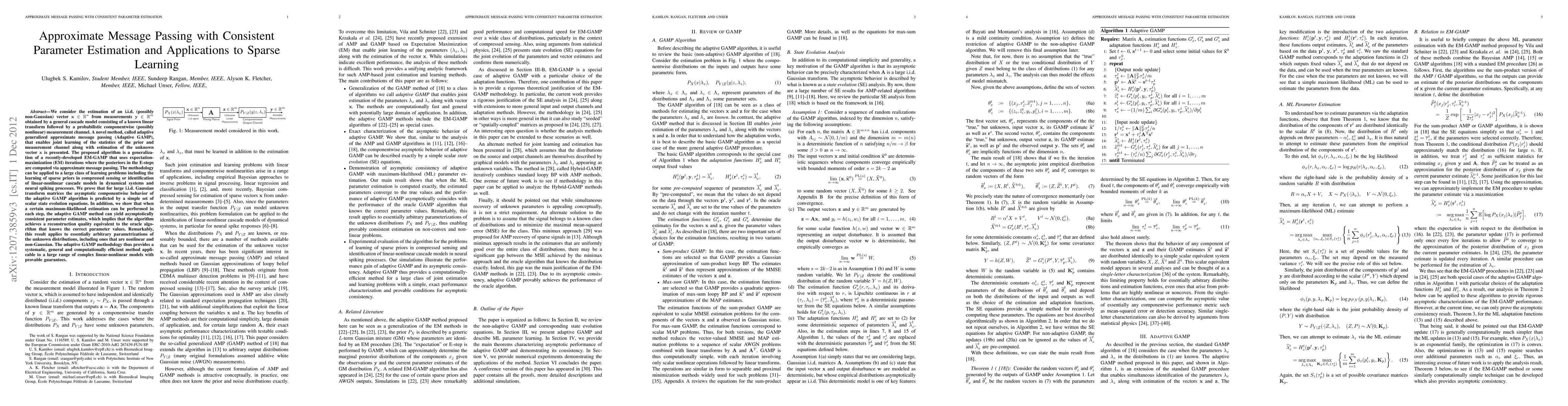 This paper introduces Adaptive Generalized Approximate Message Passing (Adaptive GAMP), a novel method for estimating sparse vectors from measurements through a cascade model. The algorithm generalizes EM-GAMP and can jointly learn prior statistics and measurement channels, applicable to various learning problems. It achieves consistent parameter estimation and reconstructs signals with quality comparable to oracle methods, even for nonlinear and non-Gaussian distributions.