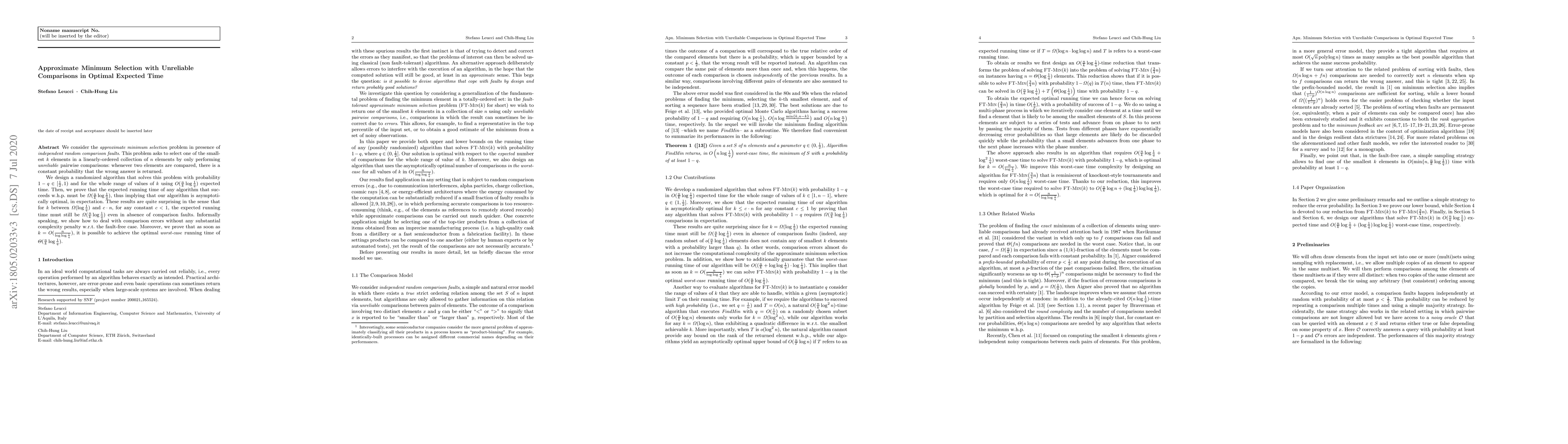 We consider the \emph{approximate minimum selection} problem in presence of \emph{independent random comparison faults}. This problem asks to select one of the smallest $k$ elements in a linearly-ordered collection of $n$ elements by only performing \emph{unreliable} pairwise comparisons: whenever two elements are compared, there is a constant probability that the wrong answer is returned. We design a randomized algorithm that solves this problem with probability $1-q \in [ \frac{1}{2}, 1)$ and for the whole range of values of $k$ using $O( \frac{n}{k} \log \frac{1}{q} )$ expected time. Then, we prove that the expected running time of any algorithm that succeeds w.h.p. must be $\Omega(\frac{n}{k}\log \frac{1}{q})$, thus implying that our algorithm is asymptotically optimal, in expectation. These results are quite surprising in the sense that for $k$ between $\Omega(\log \frac{1}{q})$ and $c \cdot n$, for any constant $c<1$, the expected running time must still be $\Omega(\frac{n}{k}\log \frac{1}{q})$ even in absence of comparison faults. Informally speaking, we show how to deal with comparison errors without any substantial complexity penalty w.r.t.\ the fault-free case. Moreover, we prove that as soon as $k = O( \frac{n}{\log\log \frac{1}{q}})$, it is possible to achieve the optimal \emph{worst-case} running time of $\Theta(\frac{n}{k}\log \frac{1}{q})$.