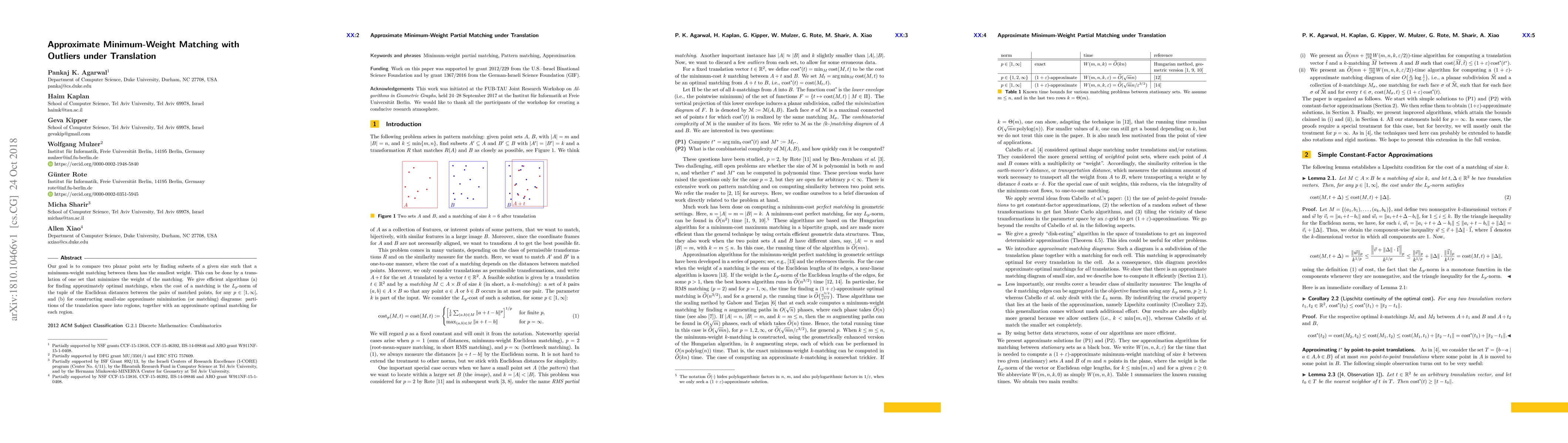 Our goal is to compare two planar point sets by finding subsets of a given size such that a minimum-weight matching between them has the smallest weight. This can be done by a translation of one set that minimizes the weight of the matching. We give efficient algorithms (a) for finding approximately optimal matchings, when the cost of a matching is the $L_p$-norm of the tuple of the Euclidean distances between the pairs of matched points, for any $p\in [1,\infty]$, and (b)~for constructing small-size approximate minimization (or matching) diagrams: partitions of the translation space into regions, together with an approximate optimal matching for each region.
