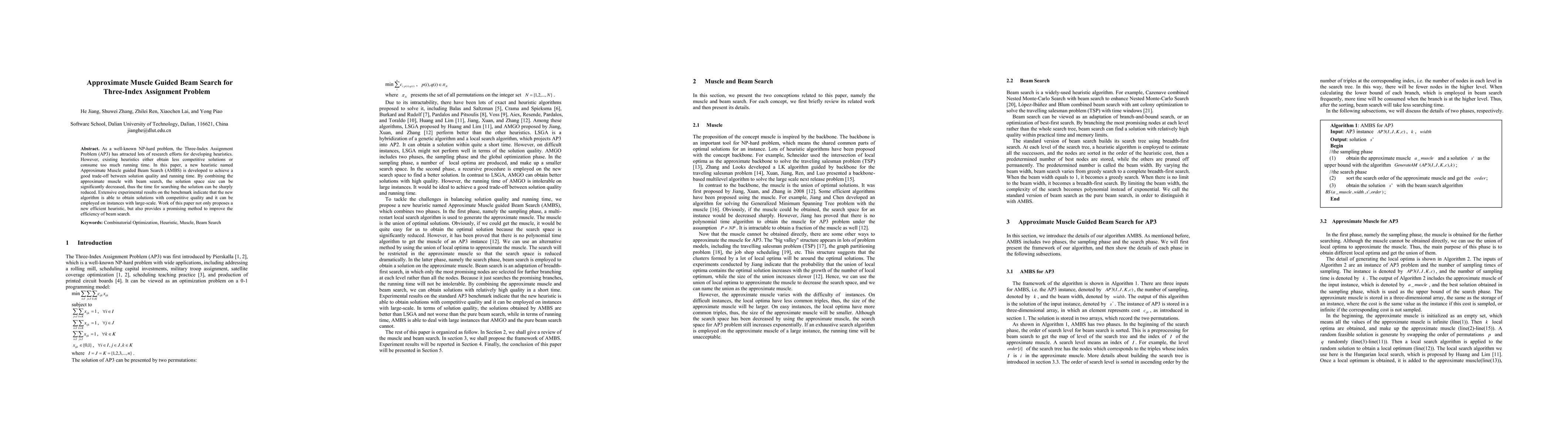 This paper introduces a new heuristic called Approximate Muscle guided Beam Search (AMBS) for solving the Three-Index Assignment Problem (AP3). The AMBS method combines approximate muscle techniques with beam search to significantly reduce the solution space size, thereby improving efficiency and maintaining competitive solution quality.