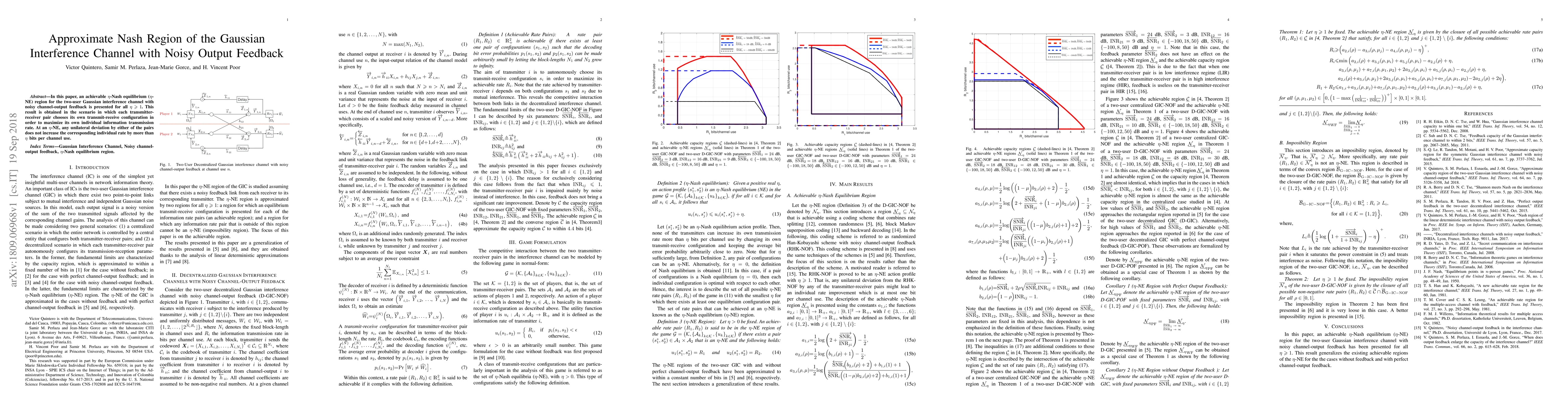 In this paper, an achievable $\eta$-Nash equilibrium ($\eta$-NE) region for the two-user Gaussian interference channel with noisy channel-output feedback is presented for all $\eta \geqslant 1$. This result is obtained in the scenario in which each transmitter-receiver pair chooses its own transmit-receive configuration in order to maximize its own individual information transmission rate. At an $\eta$-NE, any unilateral deviation by either of the pairs does not increase the corresponding individual rate by more than $\eta$ bits per channel use.