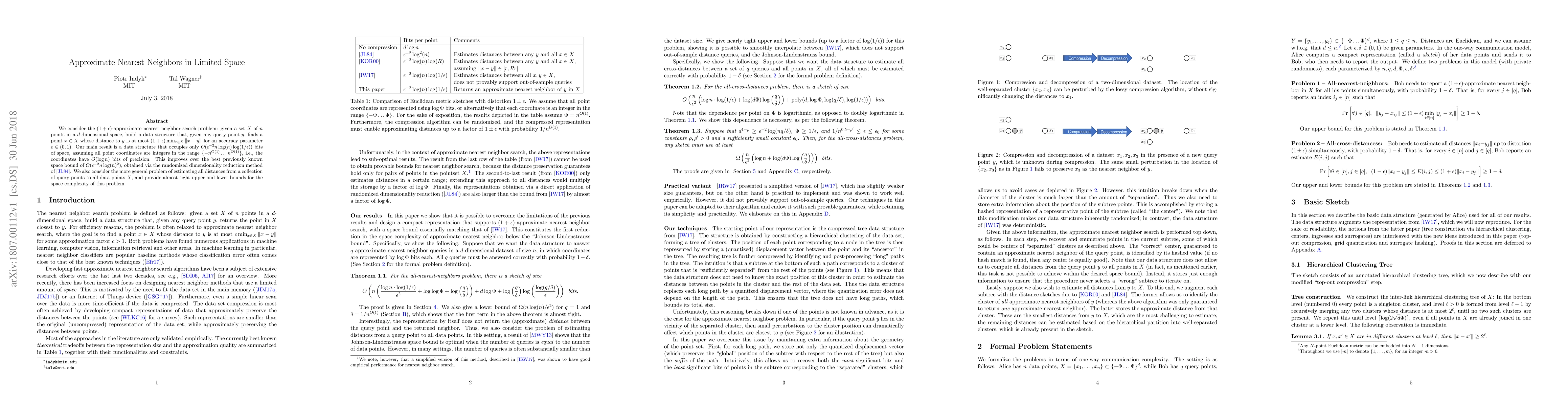 We consider the $(1+\epsilon)$-approximate nearest neighbor search problem: given a set $X$ of $n$ points in a $d$-dimensional space, build a data structure that, given any query point $y$, finds a point $x \in X$ whose distance to $y$ is at most $(1+\epsilon) \min_{x \in X} \|x-y\|$ for an accuracy parameter $\epsilon \in (0,1)$. Our main result is a data structure that occupies only $O(\epsilon^{-2} n \log(n) \log(1/\epsilon))$ bits of space, assuming all point coordinates are integers in the range $\{-n^{O(1)} \ldots n^{O(1)}\}$, i.e., the coordinates have $O(\log n)$ bits of precision. This improves over the best previously known space bound of $O(\epsilon^{-2} n \log(n)^2)$, obtained via the randomized dimensionality reduction method of Johnson and Lindenstrauss (1984). We also consider the more general problem of estimating all distances from a collection of query points to all data points $X$, and provide almost tight upper and lower bounds for the space complexity of this problem.