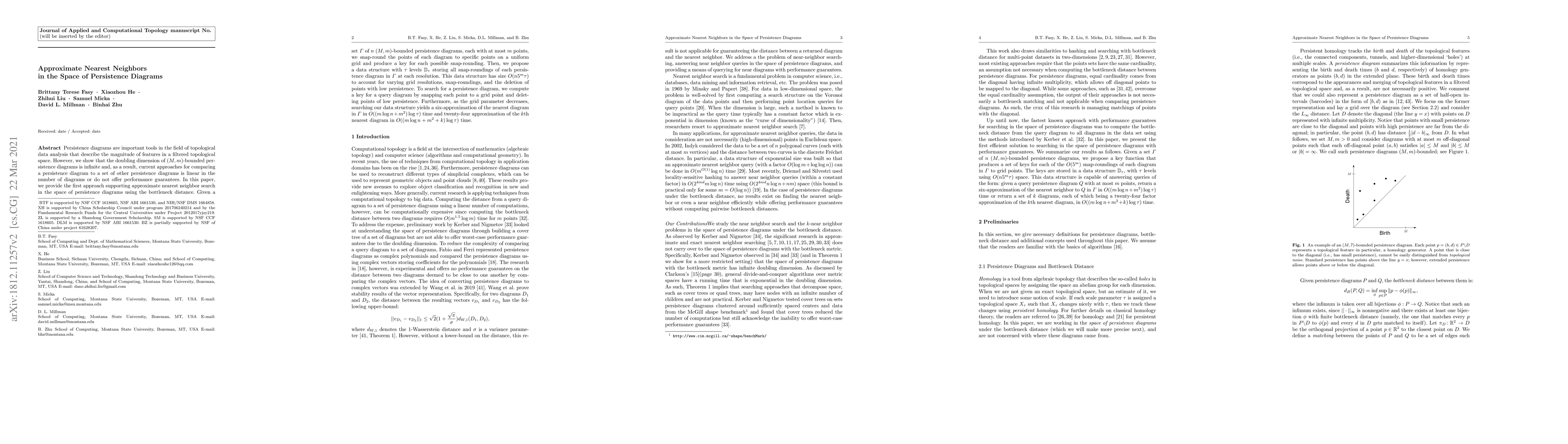 Researchers develop a data structure to efficiently search for nearest neighbors in a space of persistence diagrams, allowing for approximate nearest neighbor searches with performance guarantees.